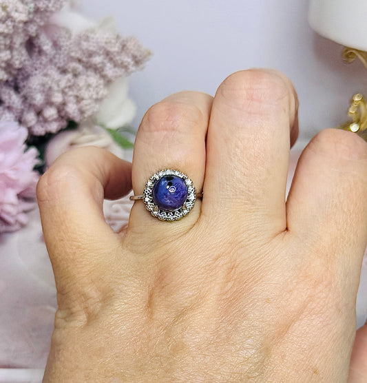 Purple Mica Adjustable Silver Ring in Gift Bag