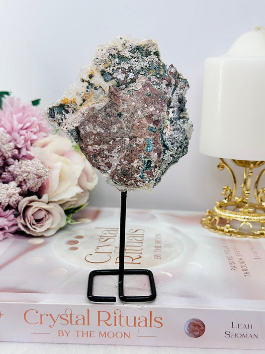 Large 21cm Natural Pink Amethyst Druzy Slab On Rose Gold Stand