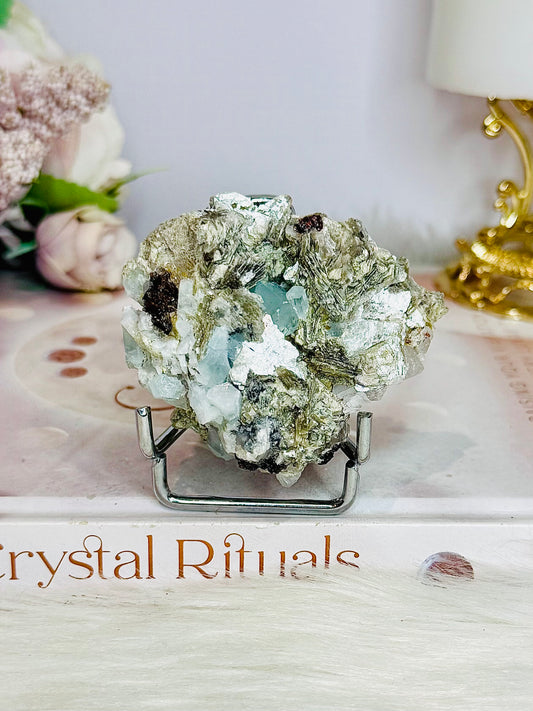 Rare Natural Aquamarine In Mica Specimen on Stand 110g