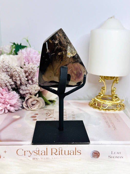 High Grade Smokey Quartz Polished Freeform With Rainbows On Stand 375g