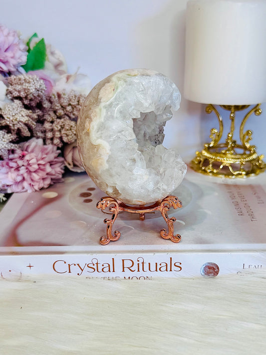 Druzy Flower Agate Egg On Stand 351grams