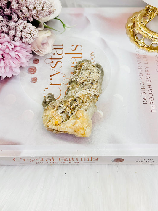 Natural Gorgeous Large Calcite Cluster 20cm On Timber Stand (UV Reactive) 1.86KG