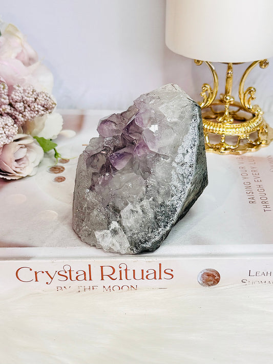 High Grade 13cm Chunky Druzy Pink Amethyst Cluster Stand From Brazil