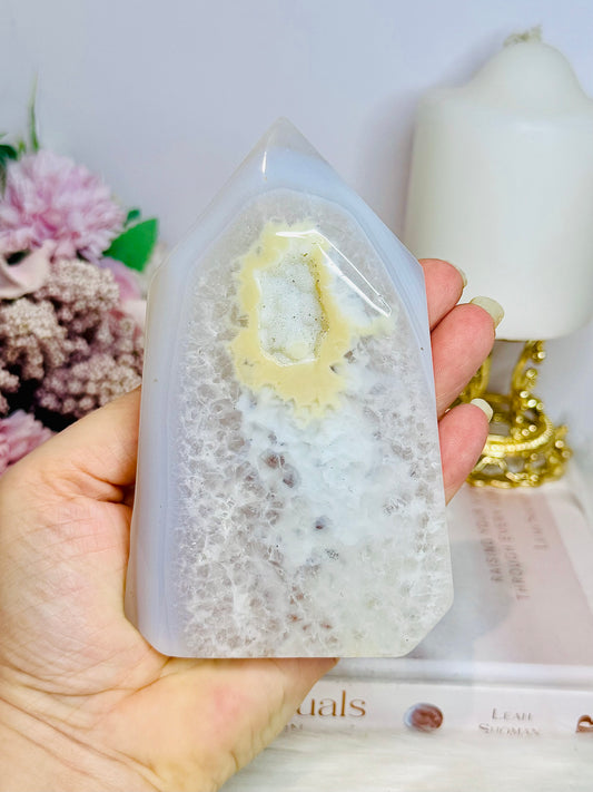 Agate Druzy Carved Heart Wings on Stand 20cm