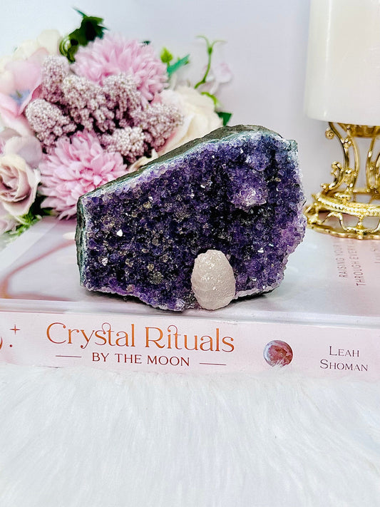 Natural Amethyst Cluster with Beautiful Calcite Inclusion 11cm 398grams