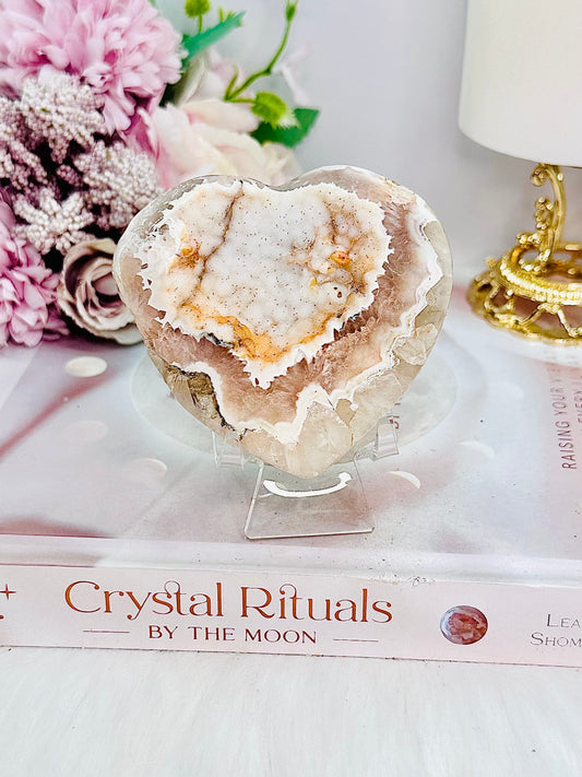 High Grade Sugar Druzy Agate Heart Carving On Stand From Brazil 278grams