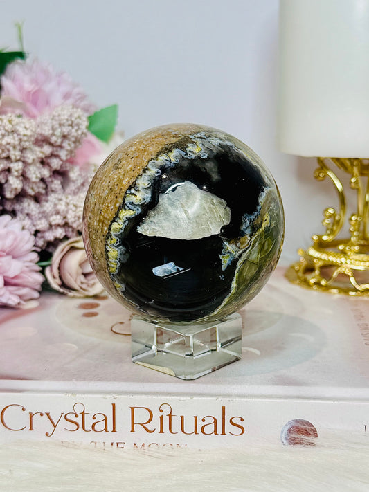 Large Volcano Agate (UV Reactive) Sphere On Stand 394g
