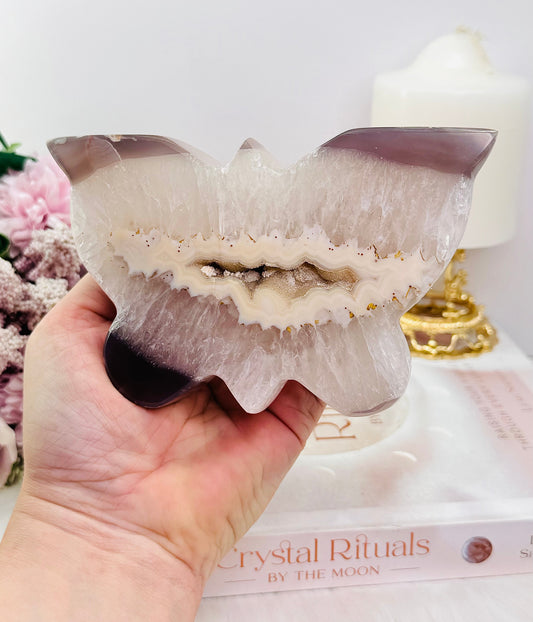 Large 14cm Druzy Agate Butterfly Carving On Stand From Brazil