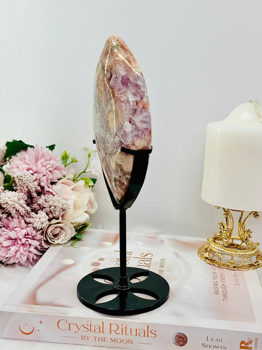 Rare High Grade Pink Amethyst X Flower Agate Freeform on Stand 21cm