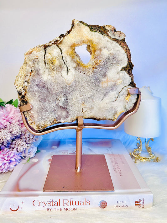 Natural Zeolite Slab | Slice on Rose Gold Stand 16cm From Brazil