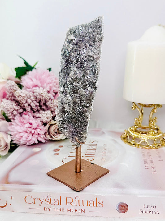 Large 23.5cm 1.5KG Druzy Pink Amethyst Slab On Rose Gold Stand