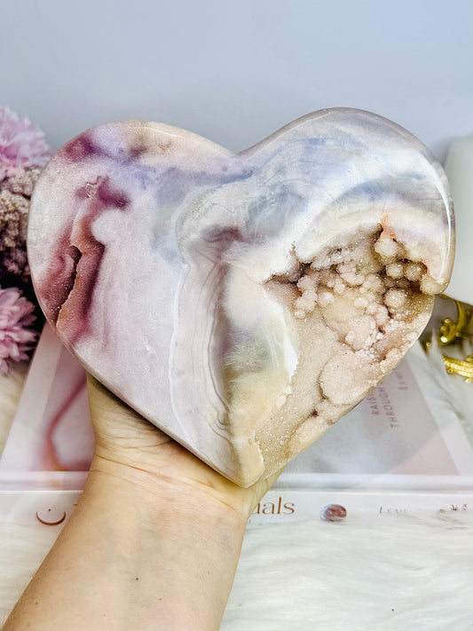 ⚜️ SALE ⚜️ Large High Grade Pink Amethyst Heart with Sugar Druzy 15cm 790g