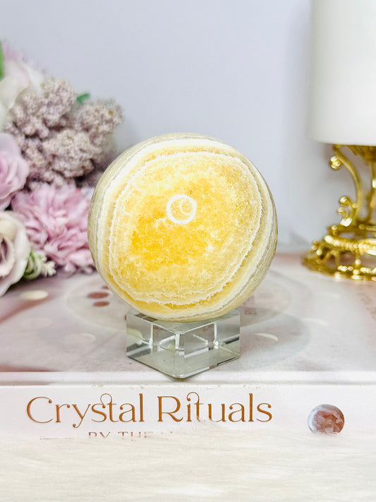 Natural Orange Calcite Sphere On Stand 350g