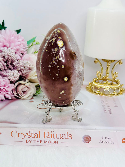Large 503gram Druzy Agate Carved & Polished Egg On Stand From Brazil