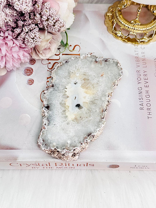 Druzy Black Flower Agate Slab on Stand 12cm