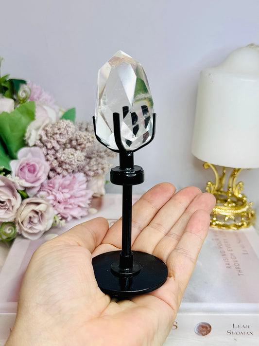 High Grade Clear Quartz Faceted Diamond On Stand 13cm