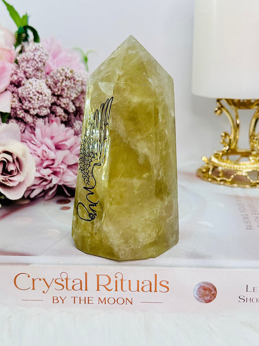 Amazing Smokey Citrine ‘Wing’ Print Tower with Rainbows 359grams