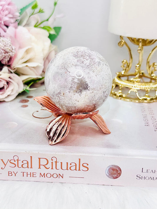 Pink Amethyst Sphere On Rose Gold Flower Stand 207grams