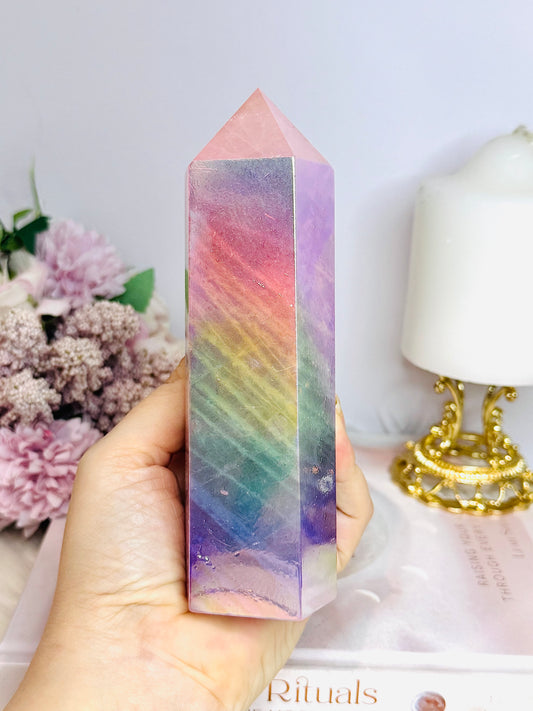 Large Angel Aura Chunky Rose Quartz Tower 16cm 597g