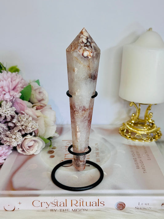 Stunning Cherry Blossom Agate Carves Wand | Tower On Stand 17cm (Inc Stand )