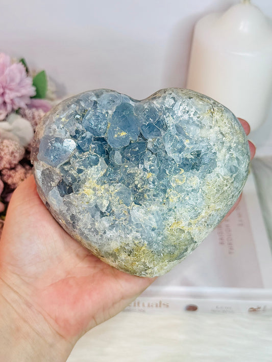 Stunning Large 1.3KG Natural Blue Celestite Cluster Carved Heart