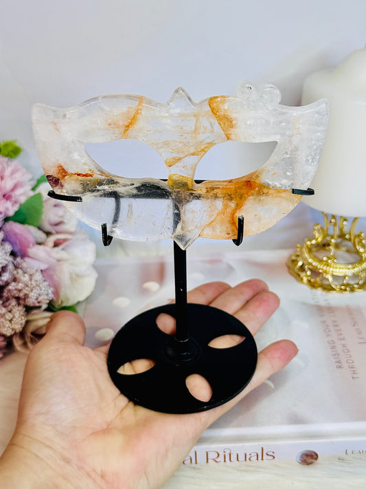 Stunning 15cm Golden Healer Carved Mask On Stand