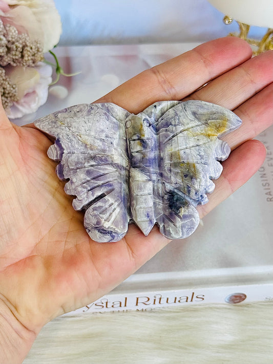Stunning 10cm Natural Tiffany Stone Carved Butterfly On Stand