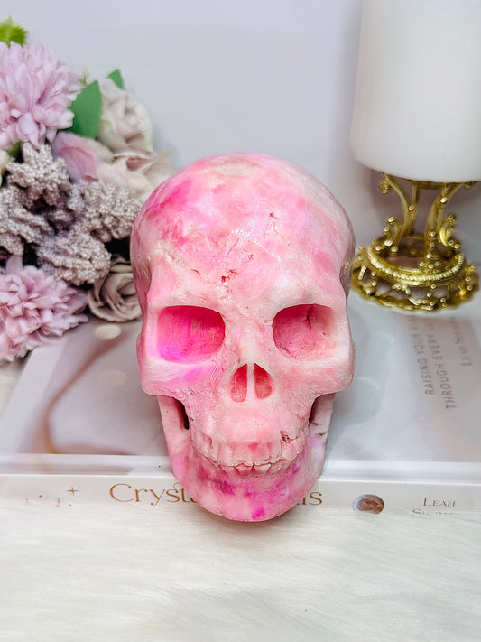 MASTERPIECE!! Absolutely Incredible Huge Natural Pink Oragonite Carved Skull 1.06KG 13cm