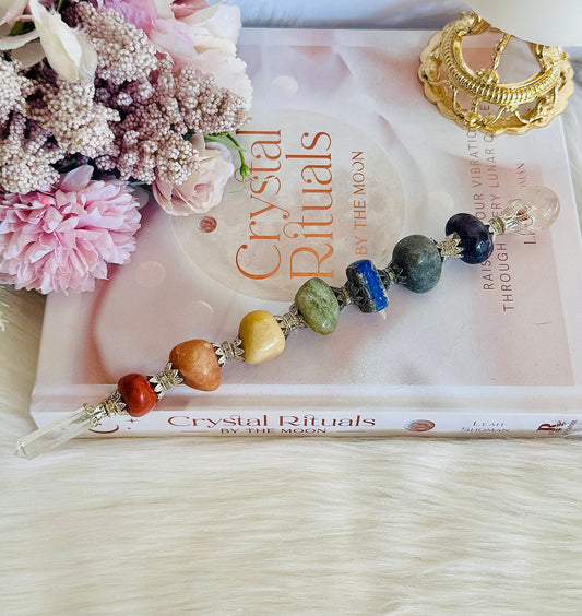 Magical 7 Chakra Crystal Wand with Clear Quartz Point 22cm