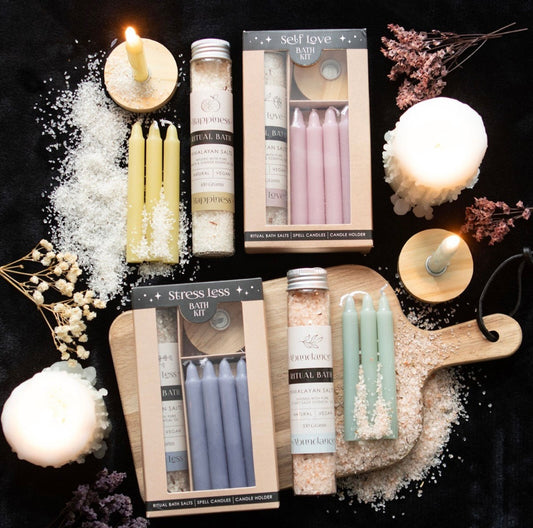‘STRESS LESS’ BATH KIT ~ Bath Salts, Candles & Holder Gift Set