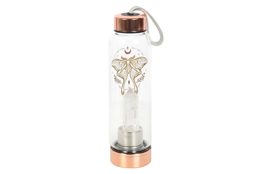 Luna Moth Glass Water Bottle with Clear Quartz Crystal