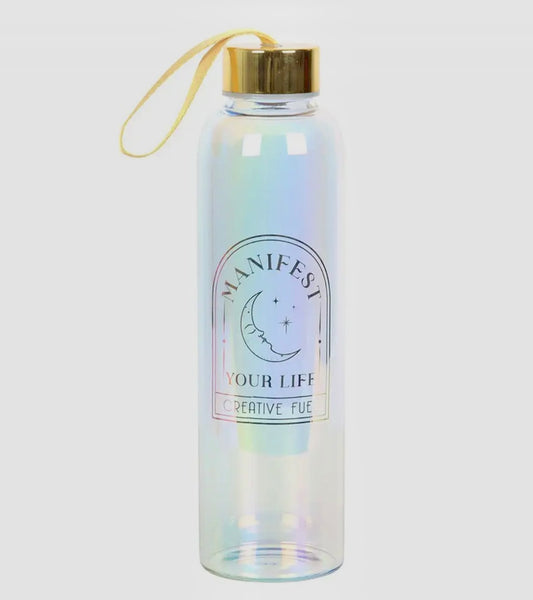 Manifest Your Life Iridescent Glass 500ml Water Bottle (Gold/Transparent)