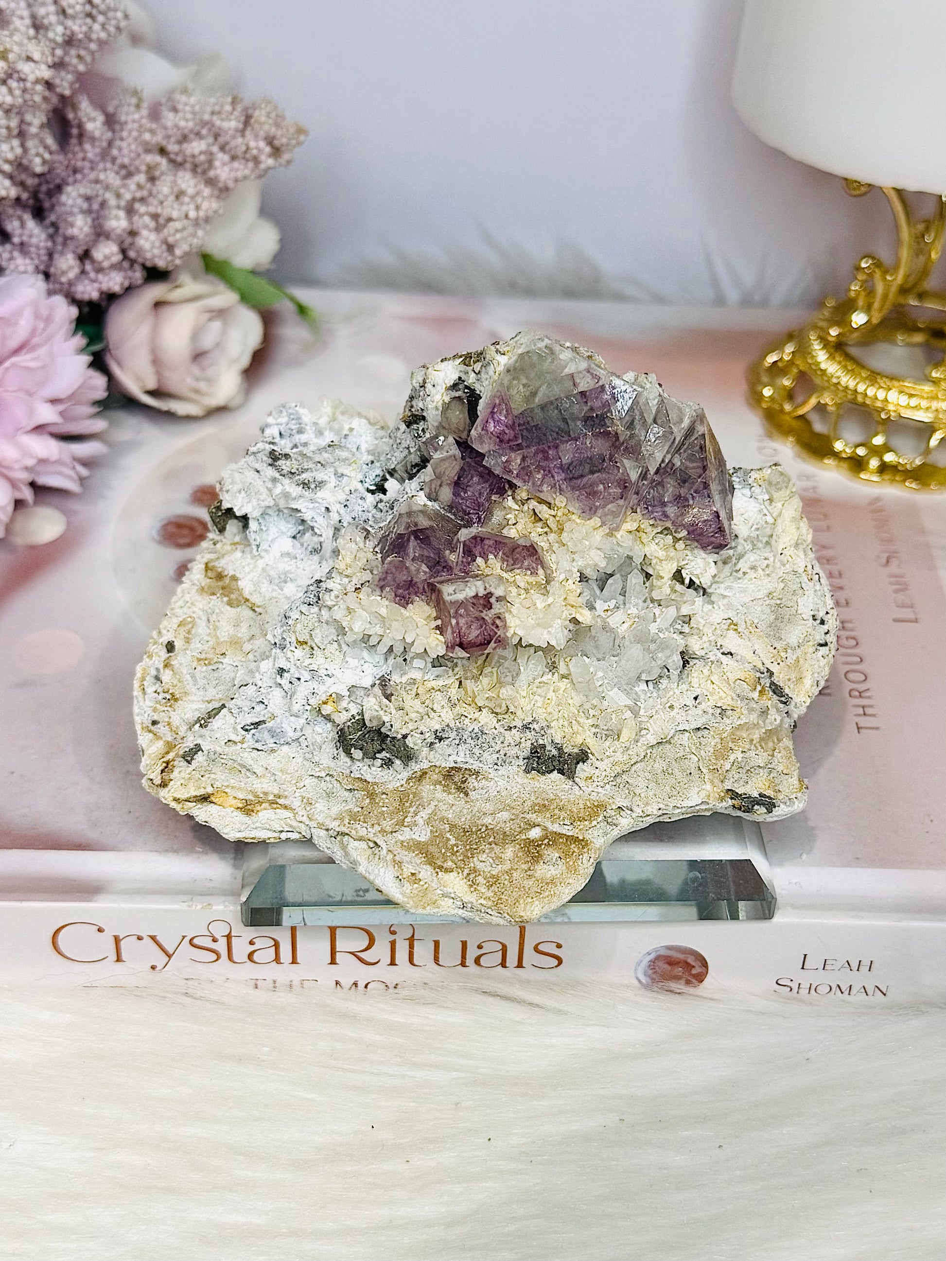 ✨ A Collectors Piece ✨ Natural Cubed Fluorite On Matrix Specimen From Mexico 703grams ~ Specimen is on Glass Stand