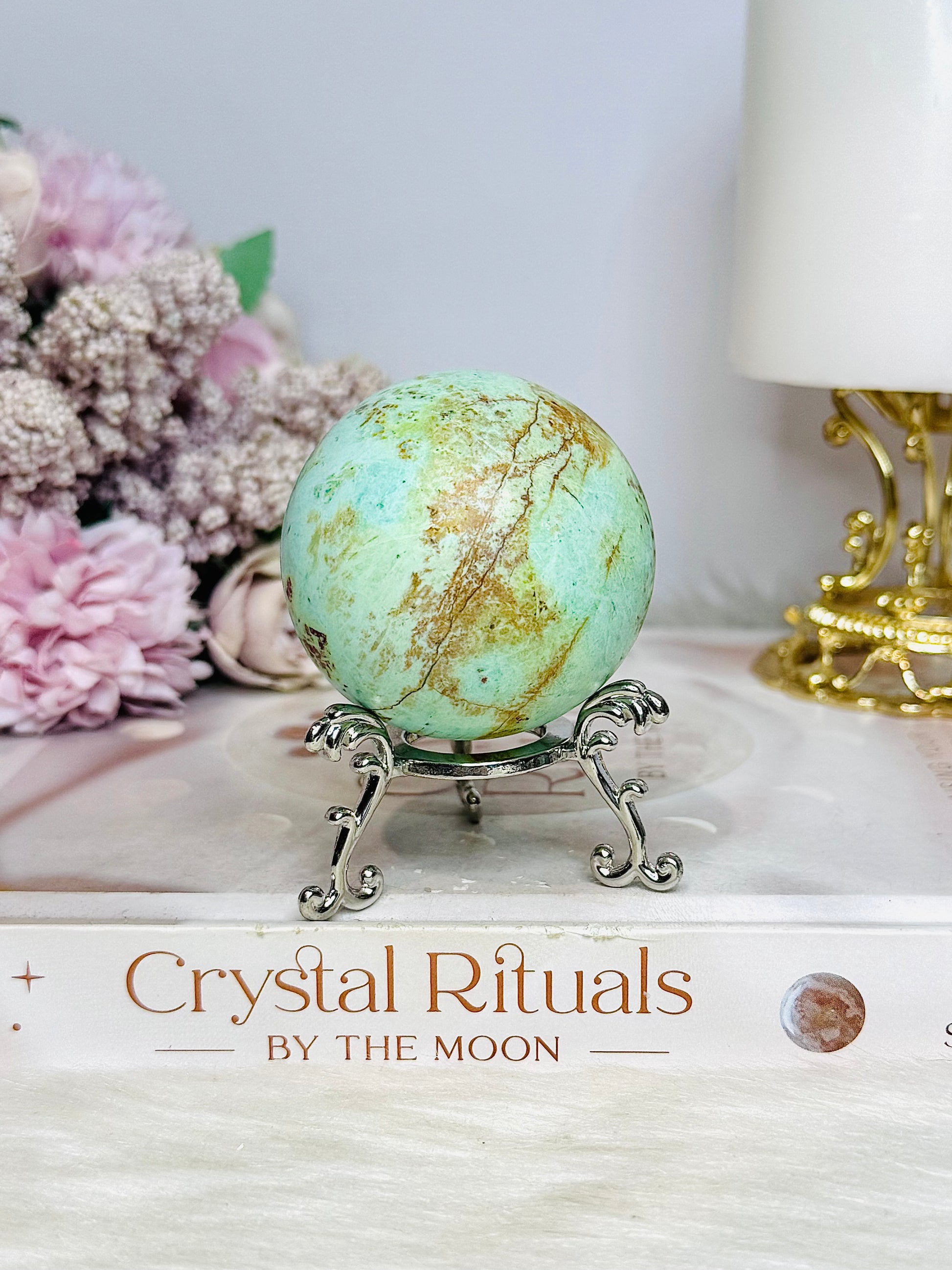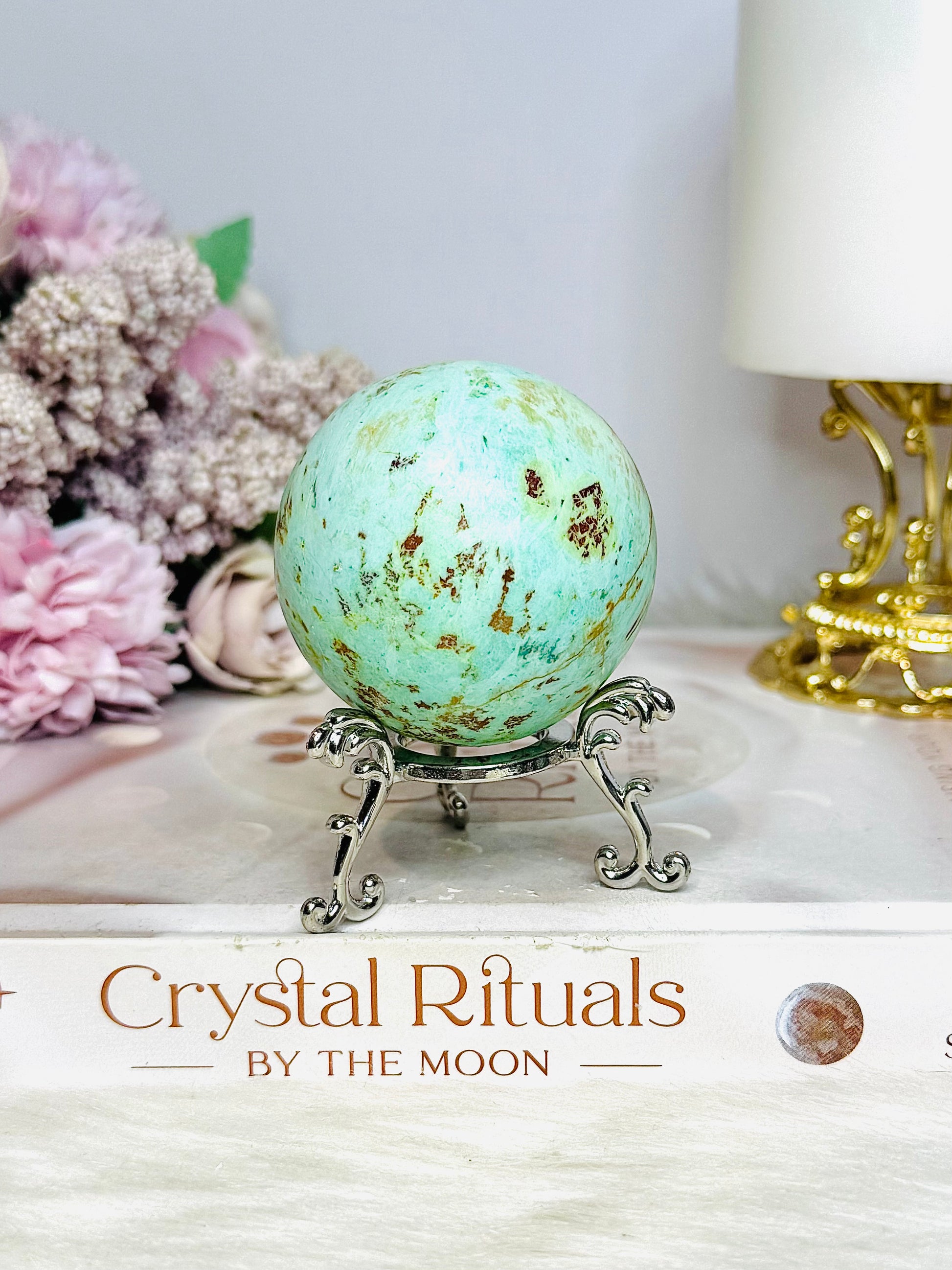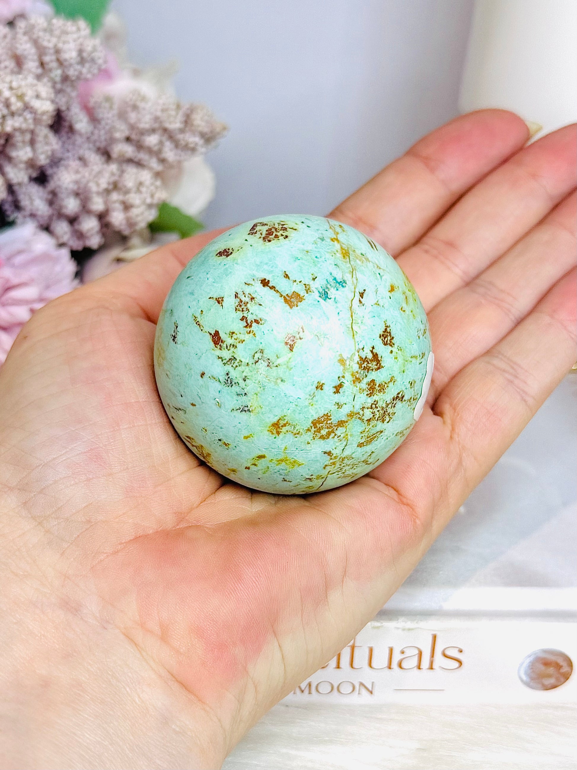 A Rare Stone ~ Genuine Inca Turquoise Sphere On Stand 170g