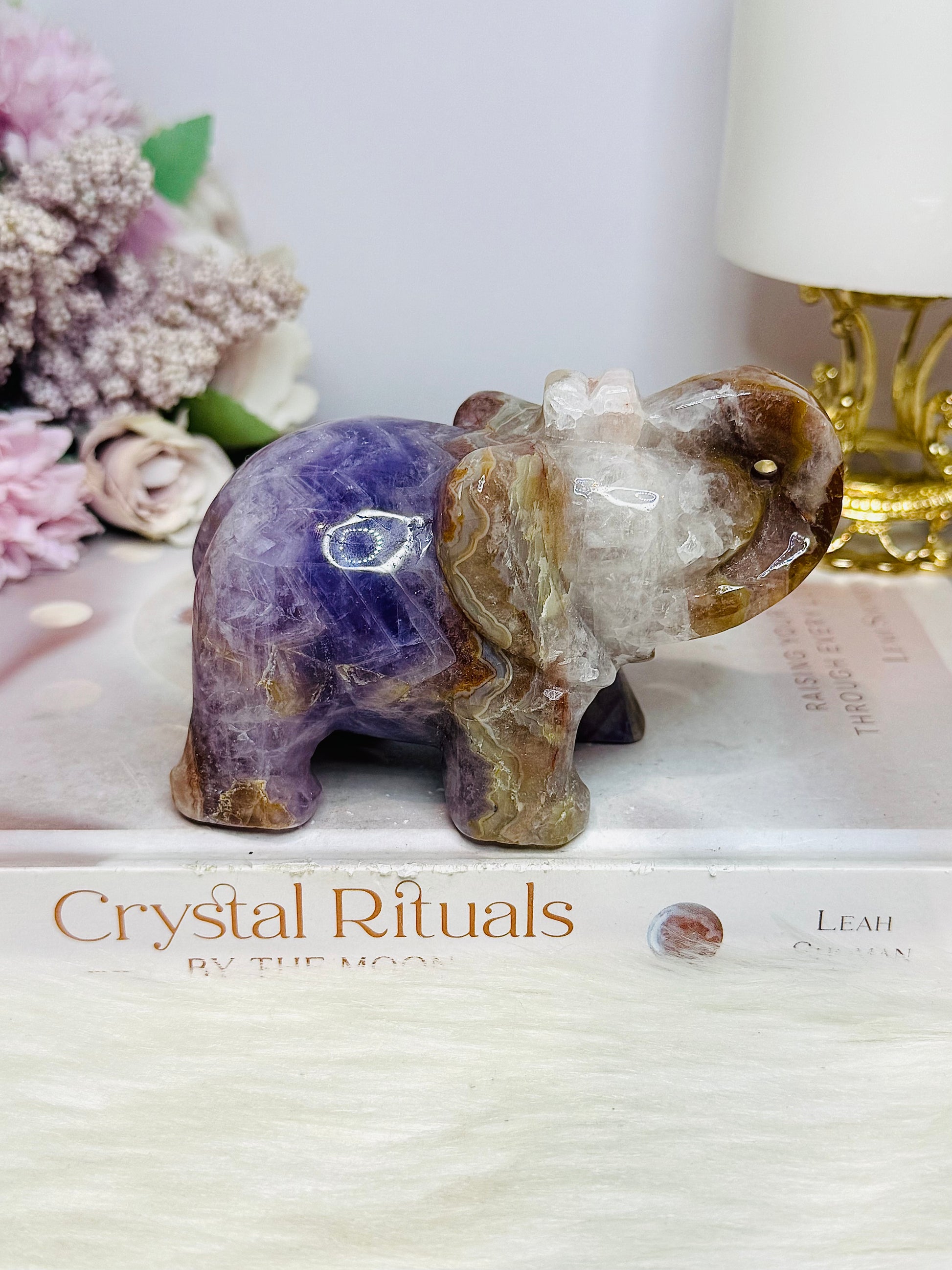 Amethyst X Mexican Lace Agate Elephant 11cm 408g