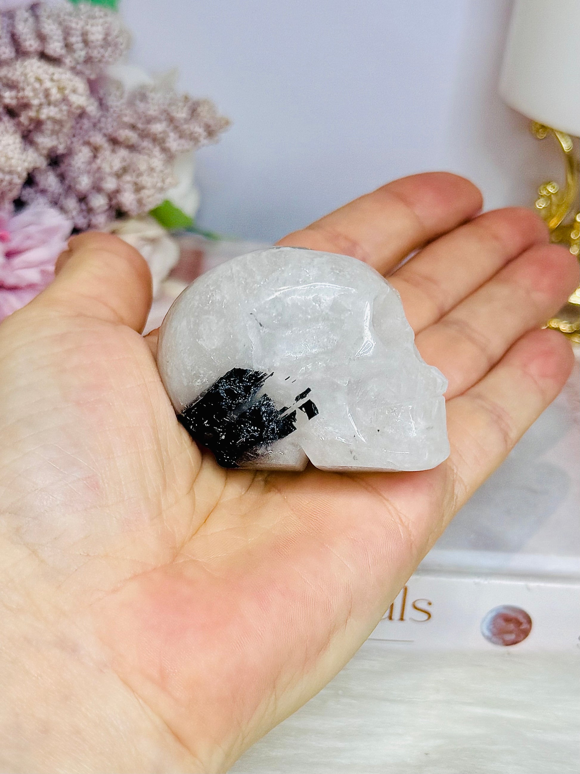 Black Tourmaline in Quartz Carved Skull 6cm