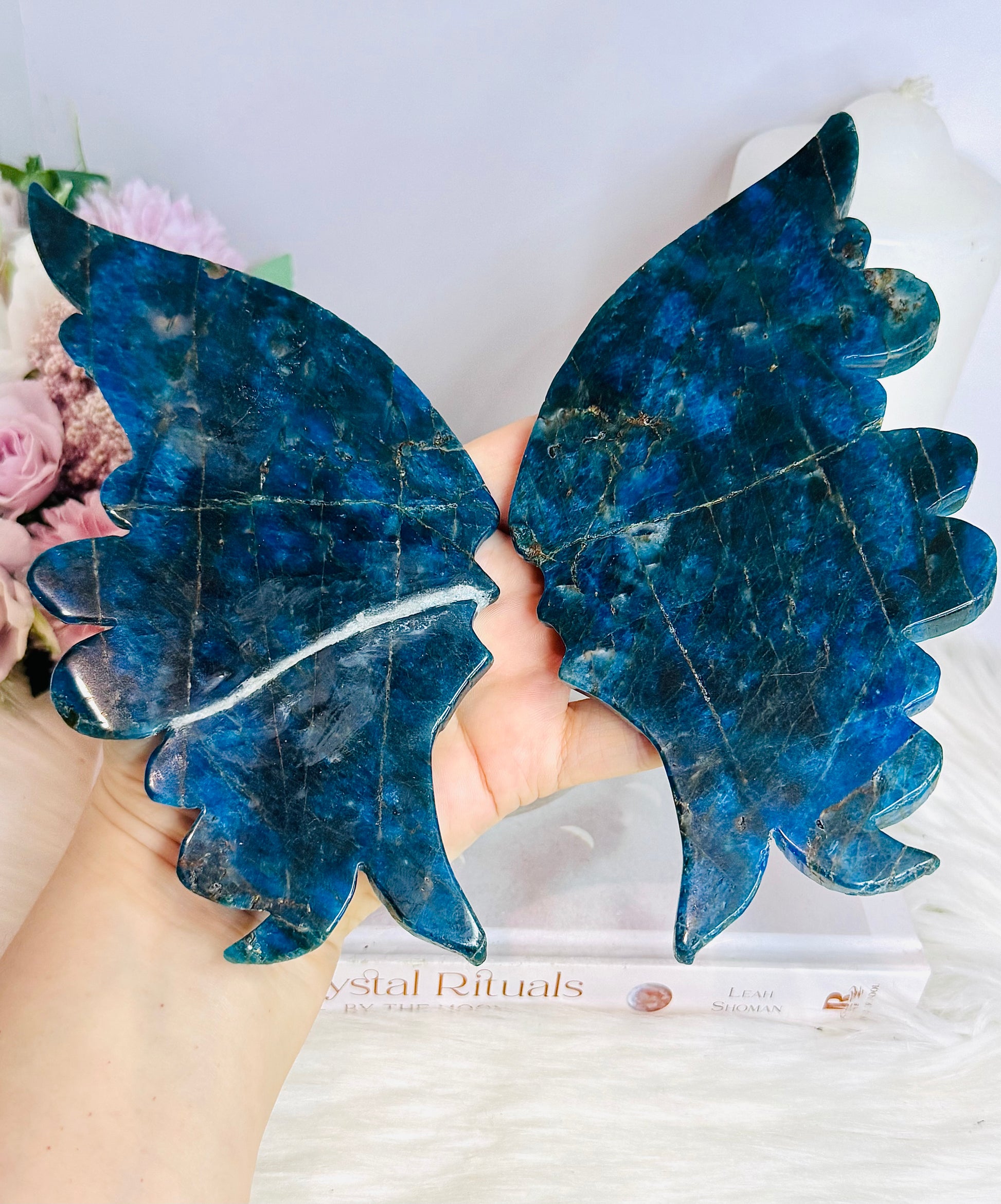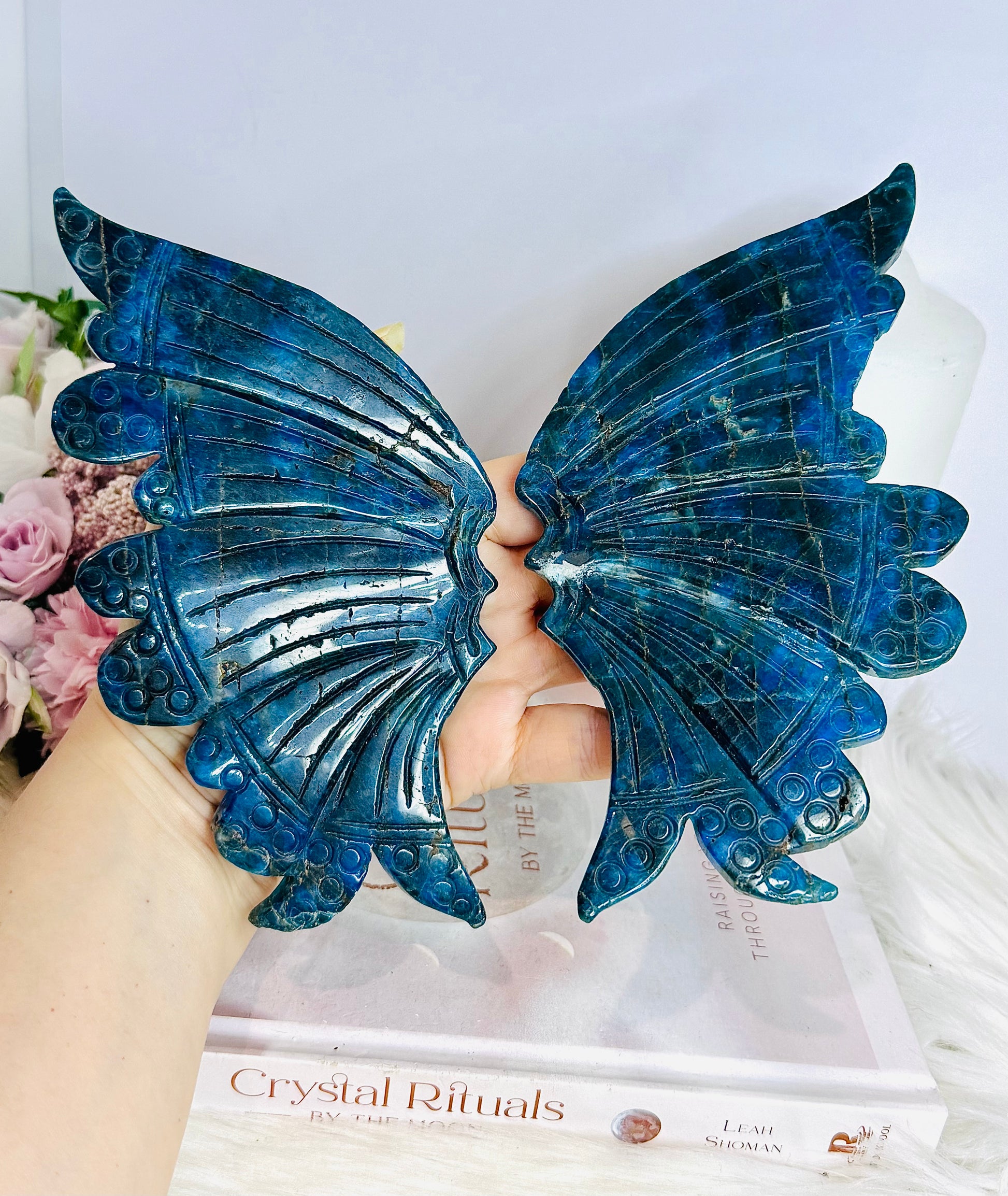 Blue Apatite Butterfly Wings on Stand 25cm ~ Discounted as right side wing has been repaired