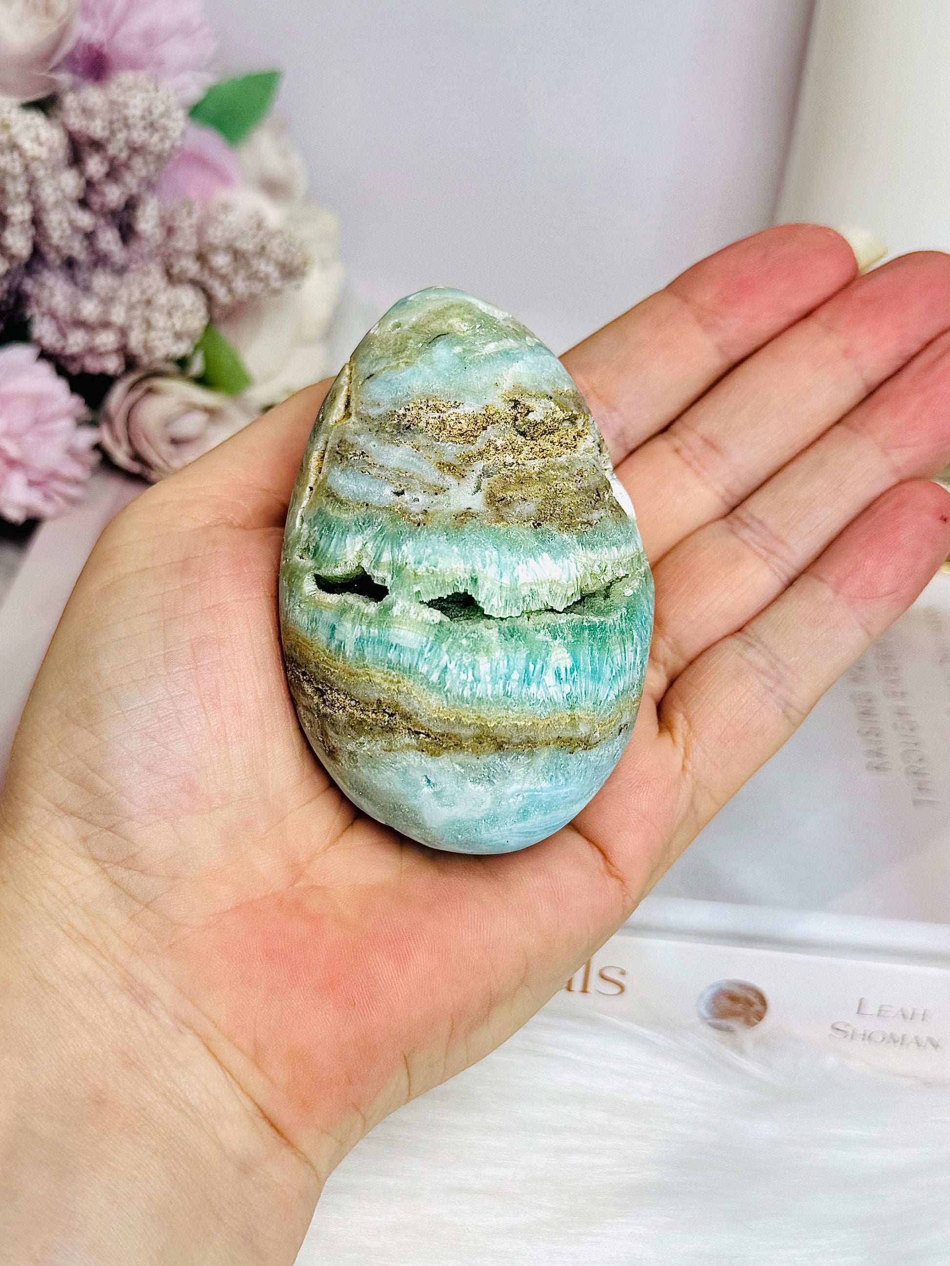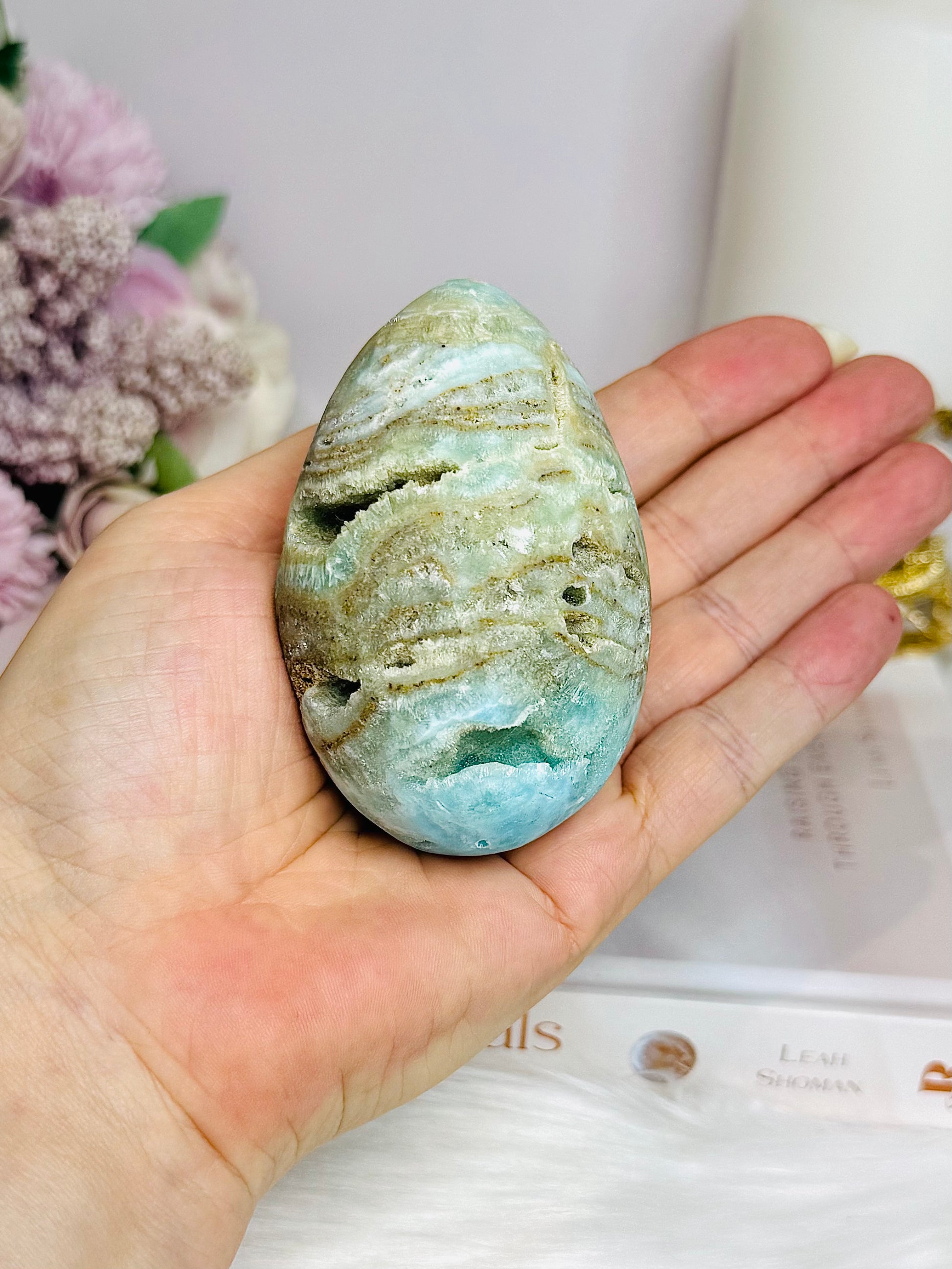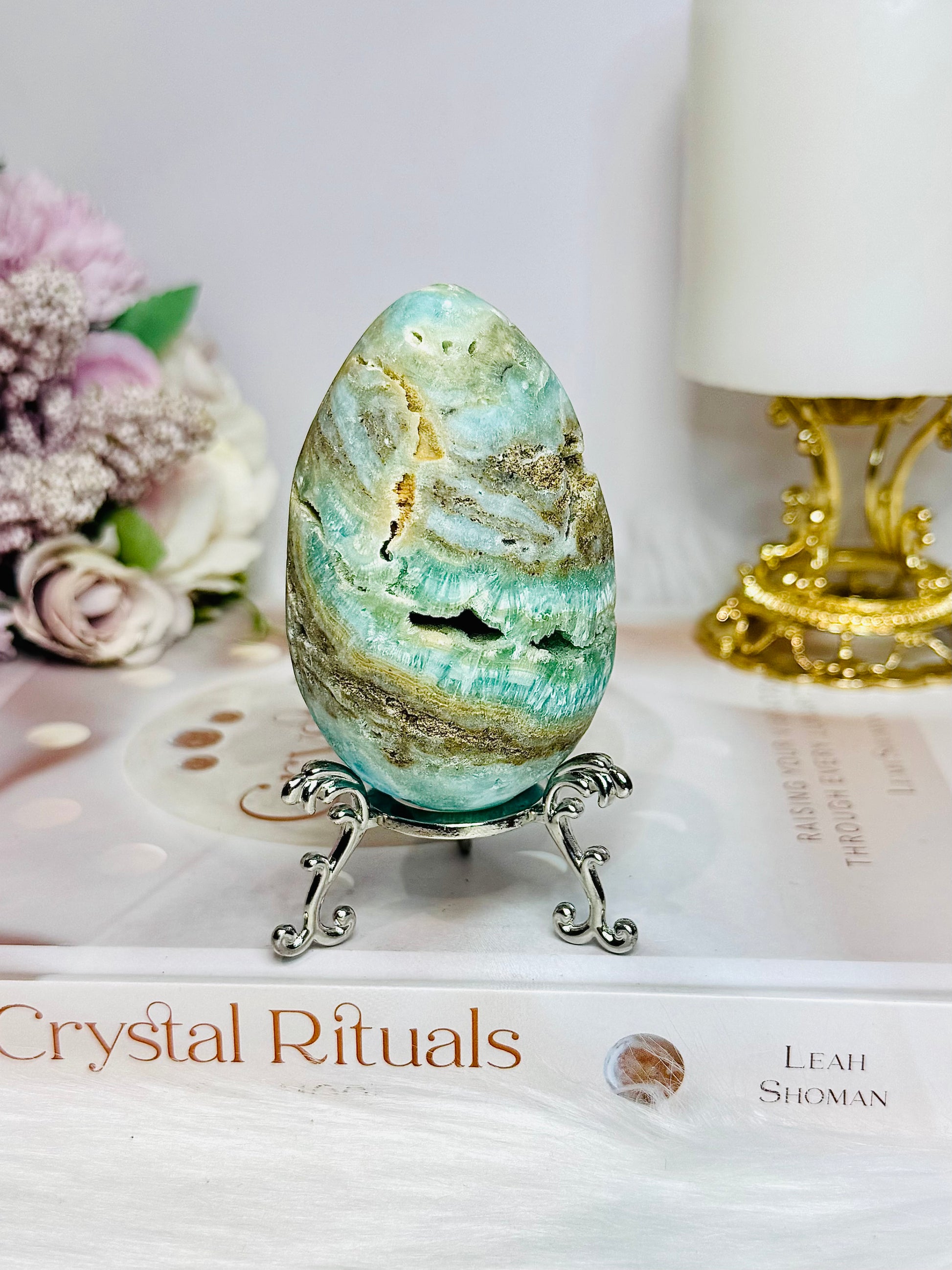 Blue Aragonite Druzy Egg On Stand 8cm 234g