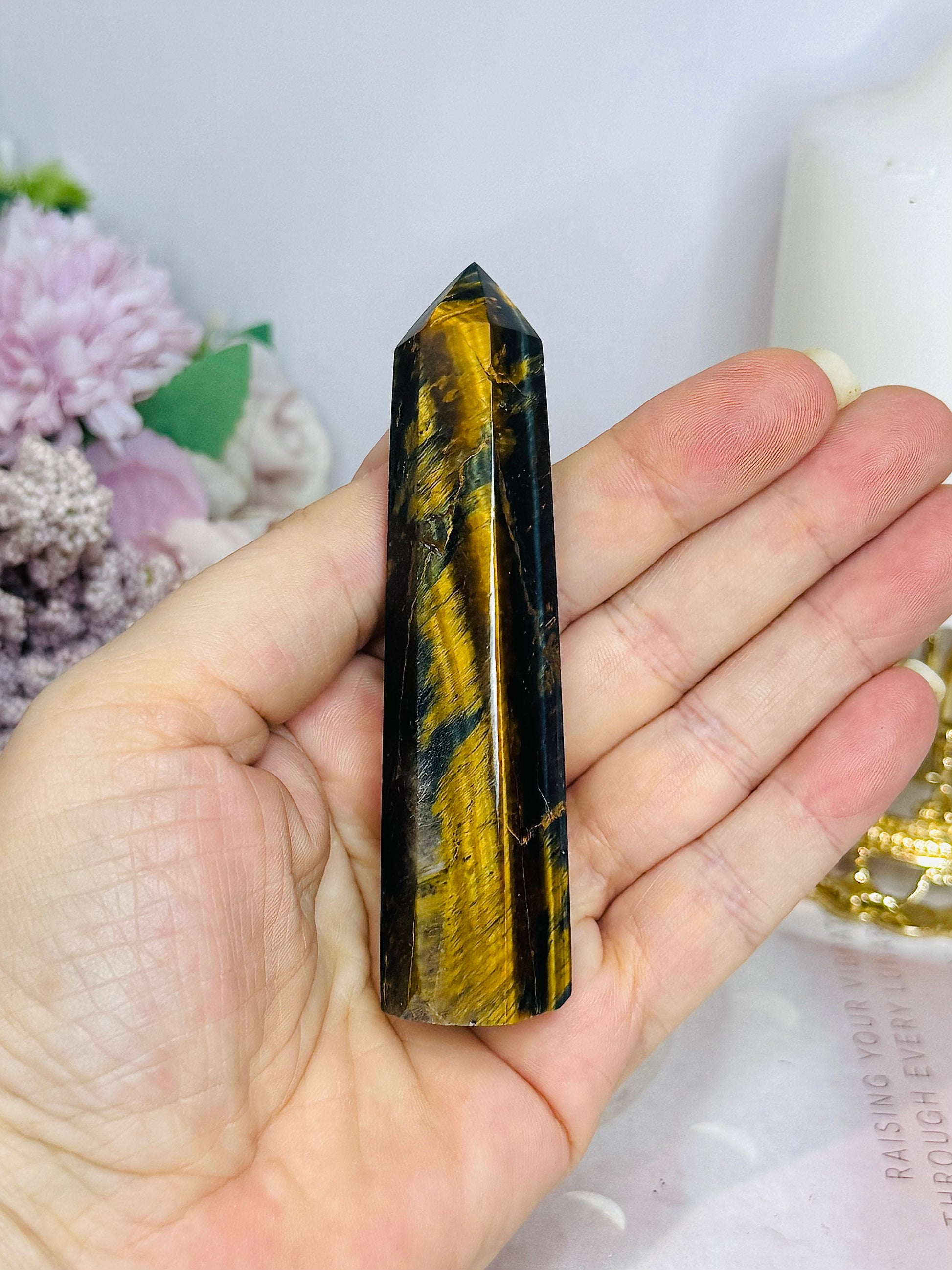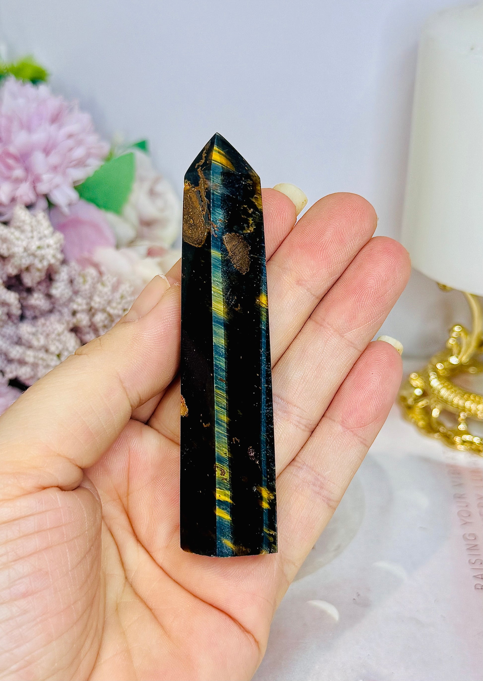 Blue & Gold Flash Tigers Eye Tower 9.5cm