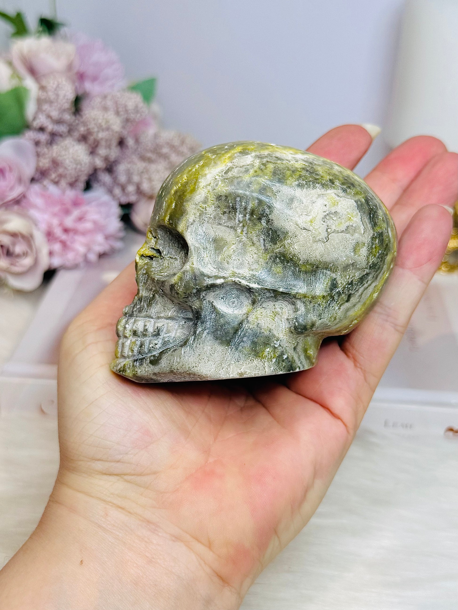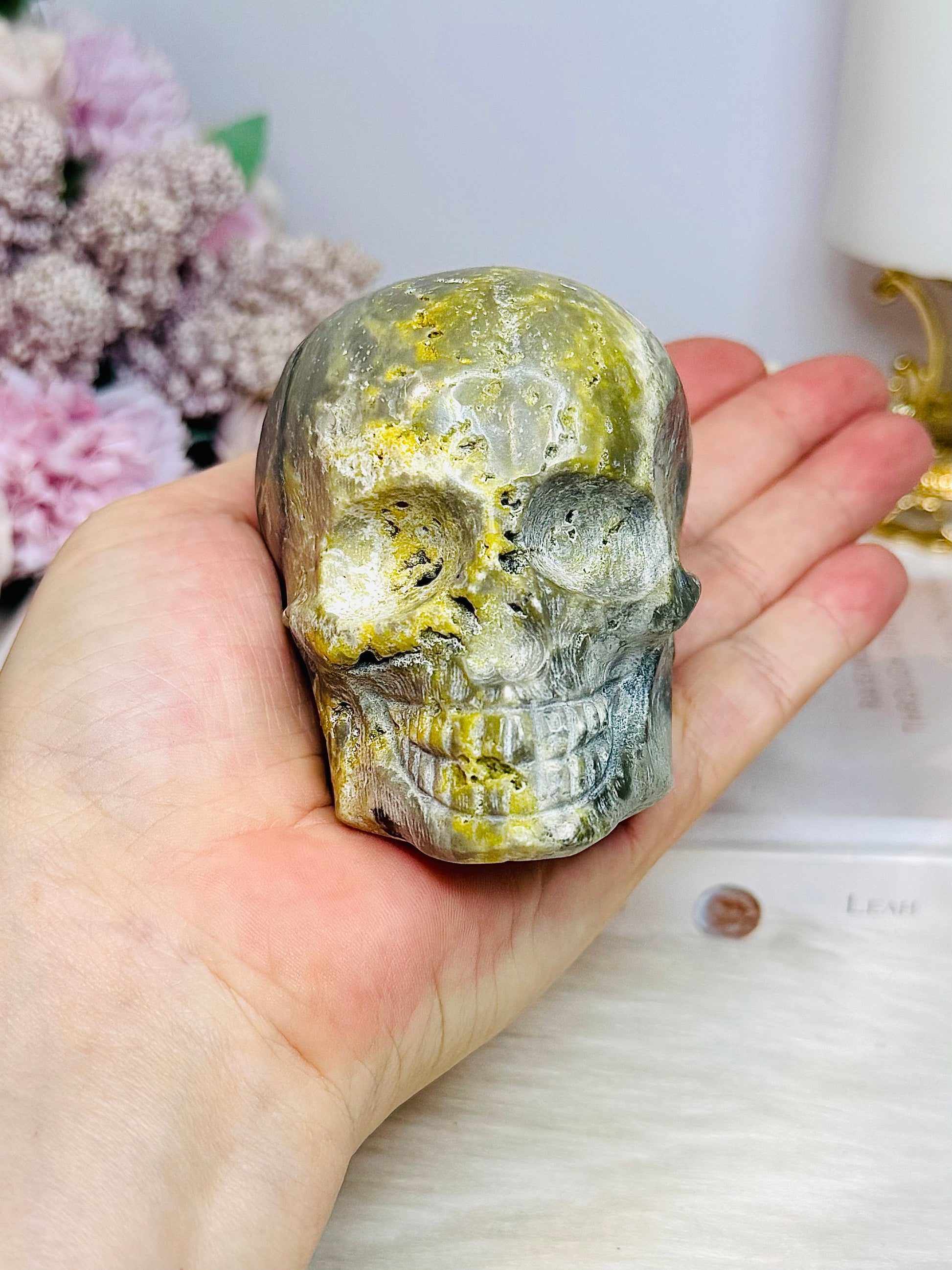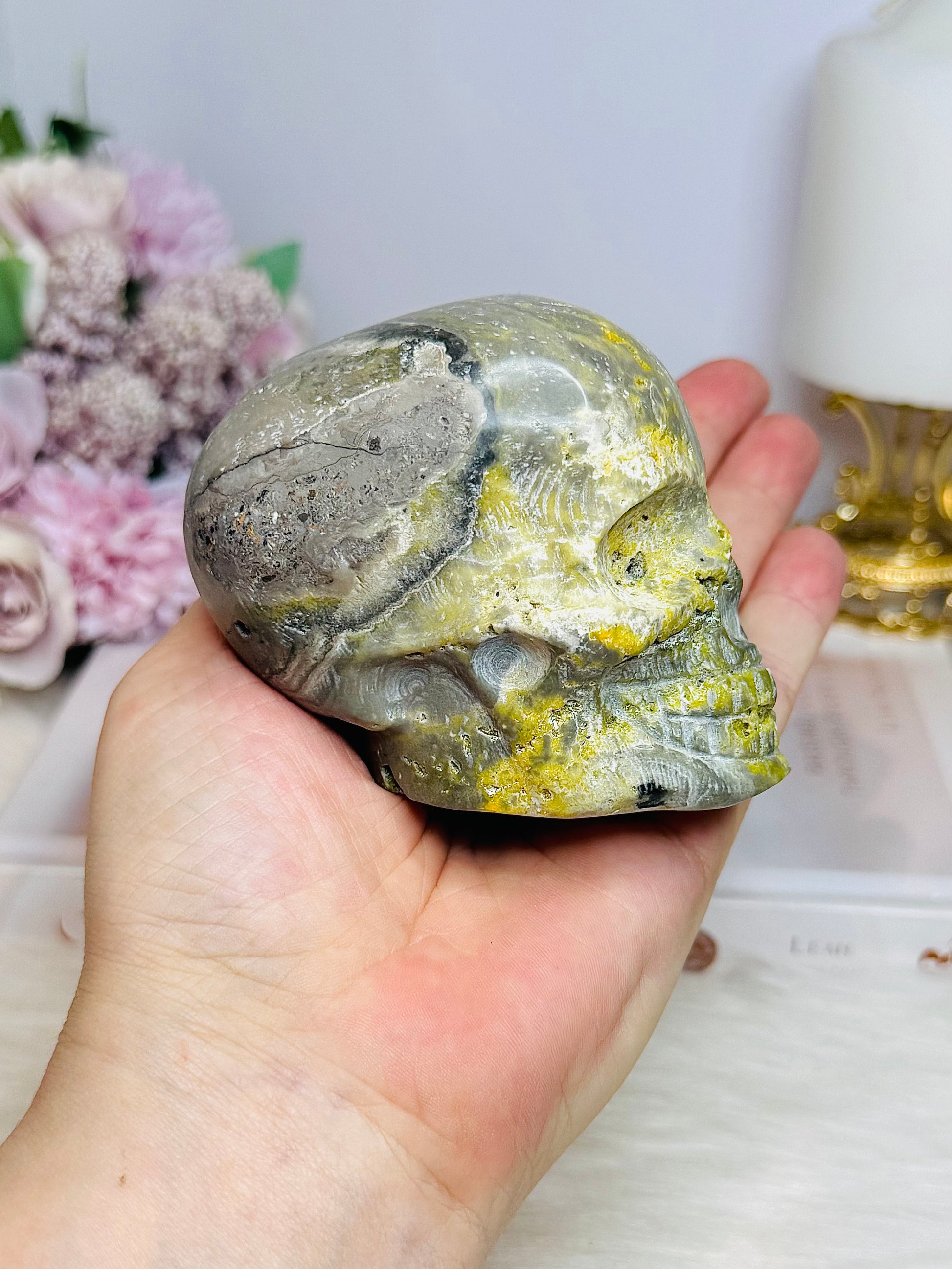 Bumblebee Jasper Carved Skull 8cm 442g