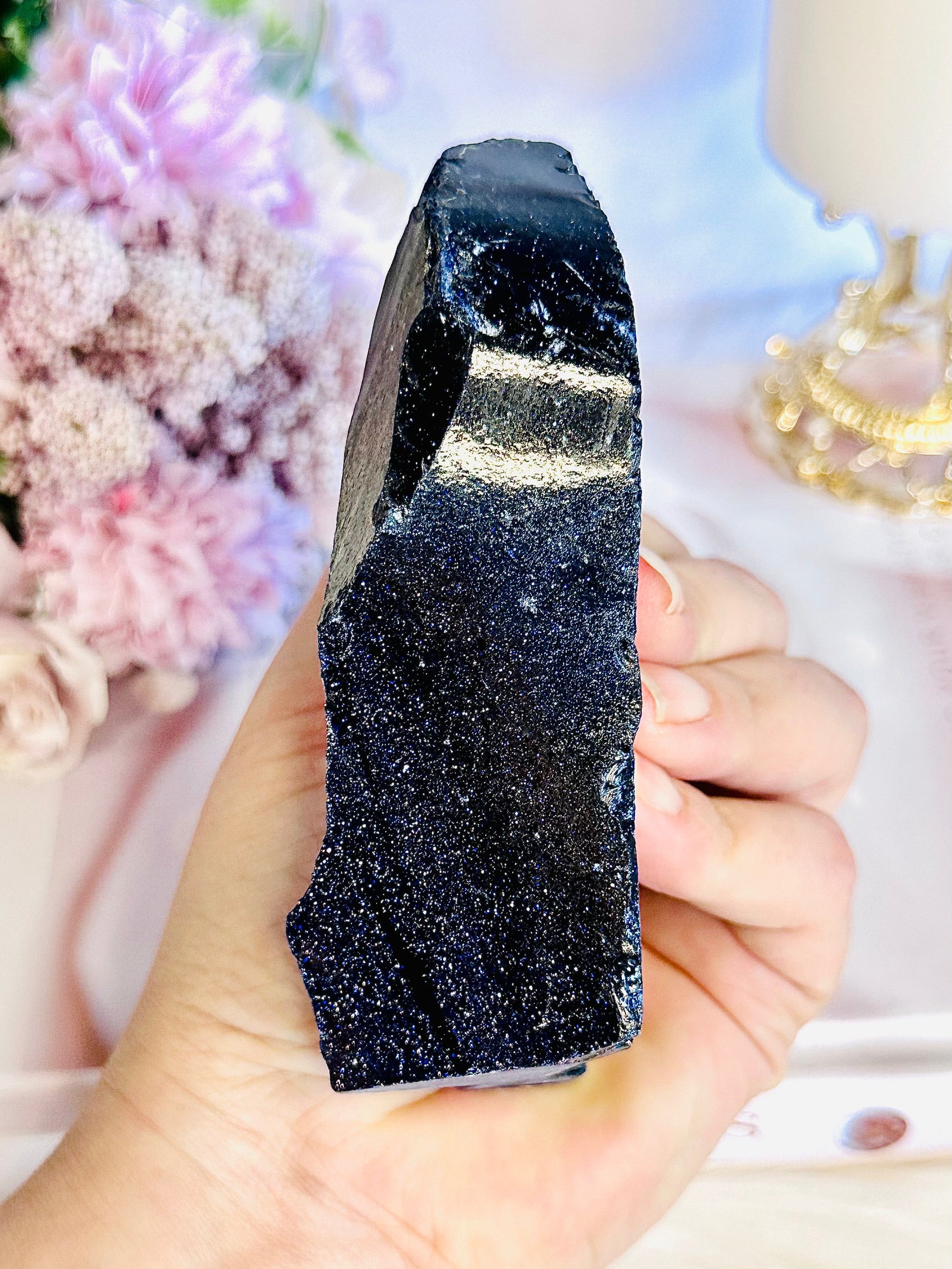 Chunky 12cm Sparkling Blue Goldstone Synthetic Crystal