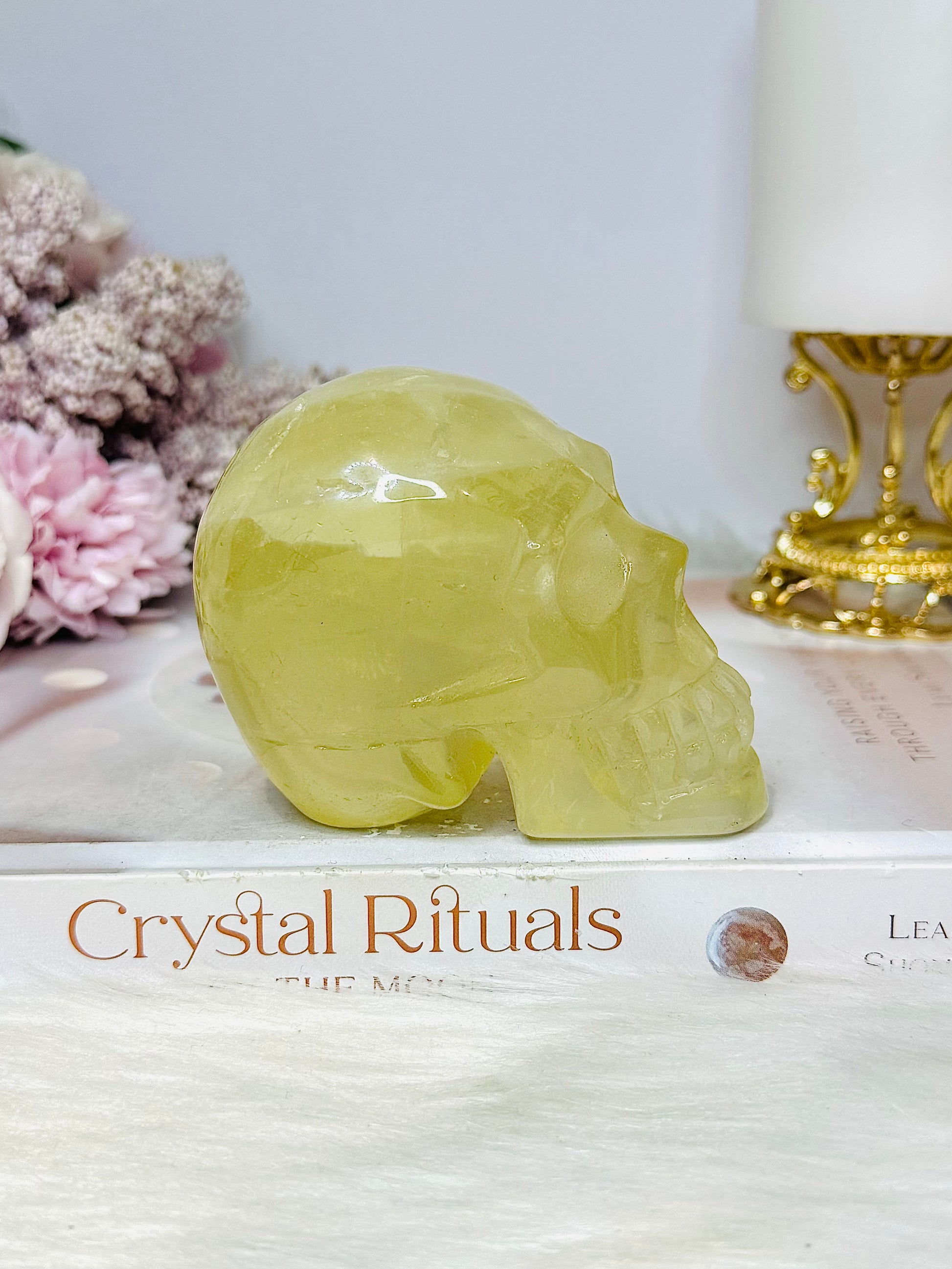 Citrine Carved Skull with Rainbows 8cm 399g