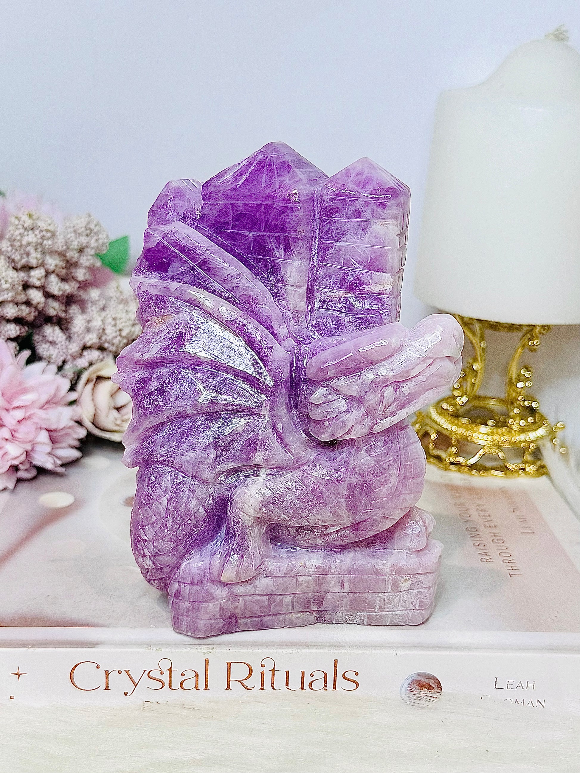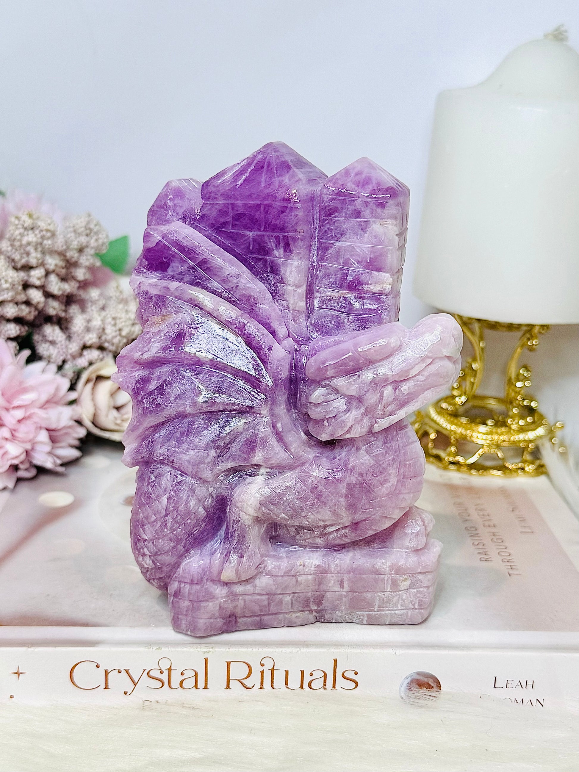 Collectors Piece ~ Large High Grade Kunzite Dragon & Castle 13cm 793g