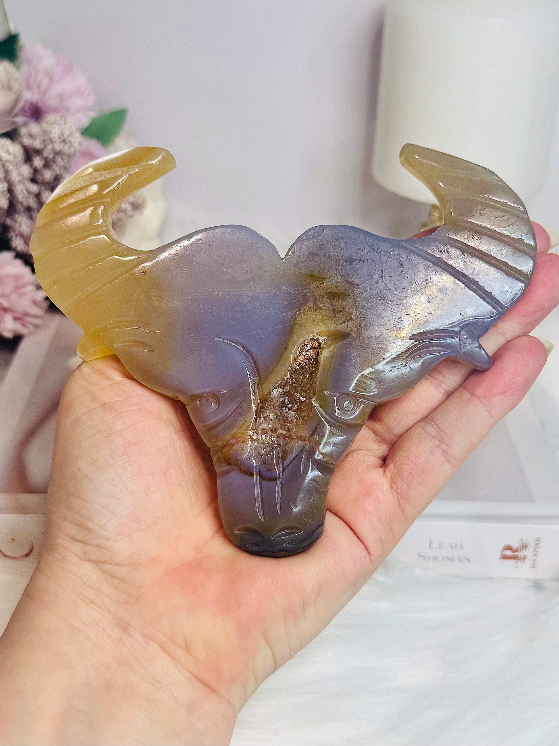 Druzy Agate Carved Bull Head On Stand 13.5cm