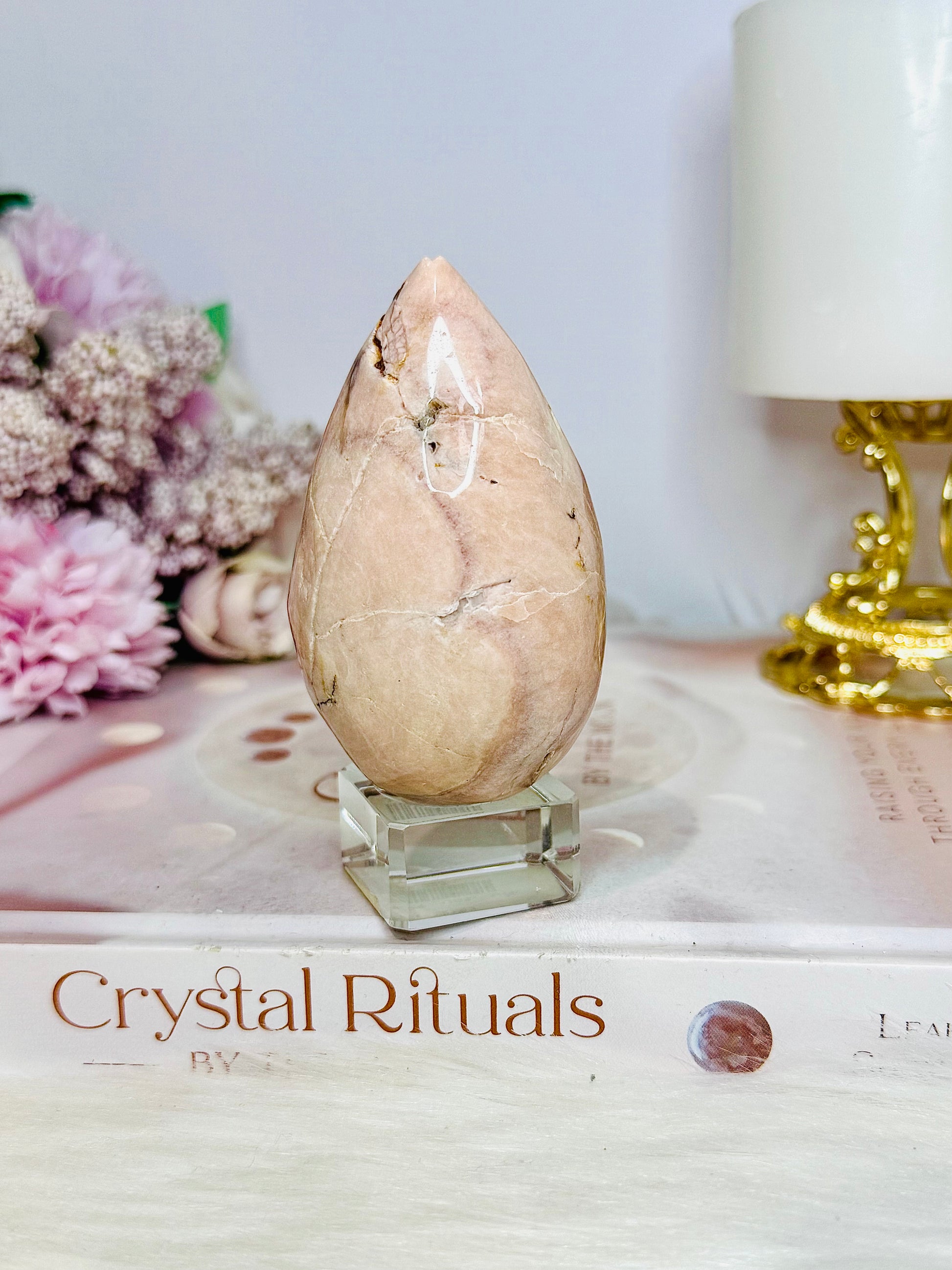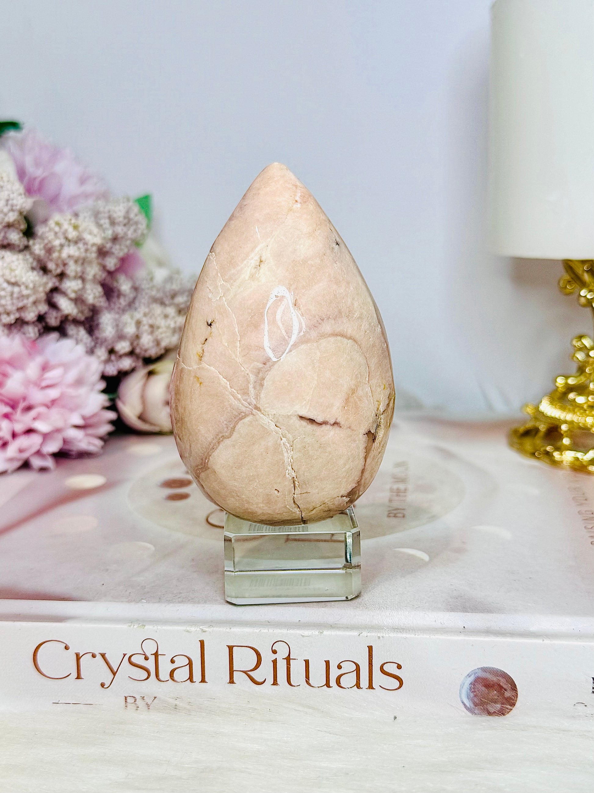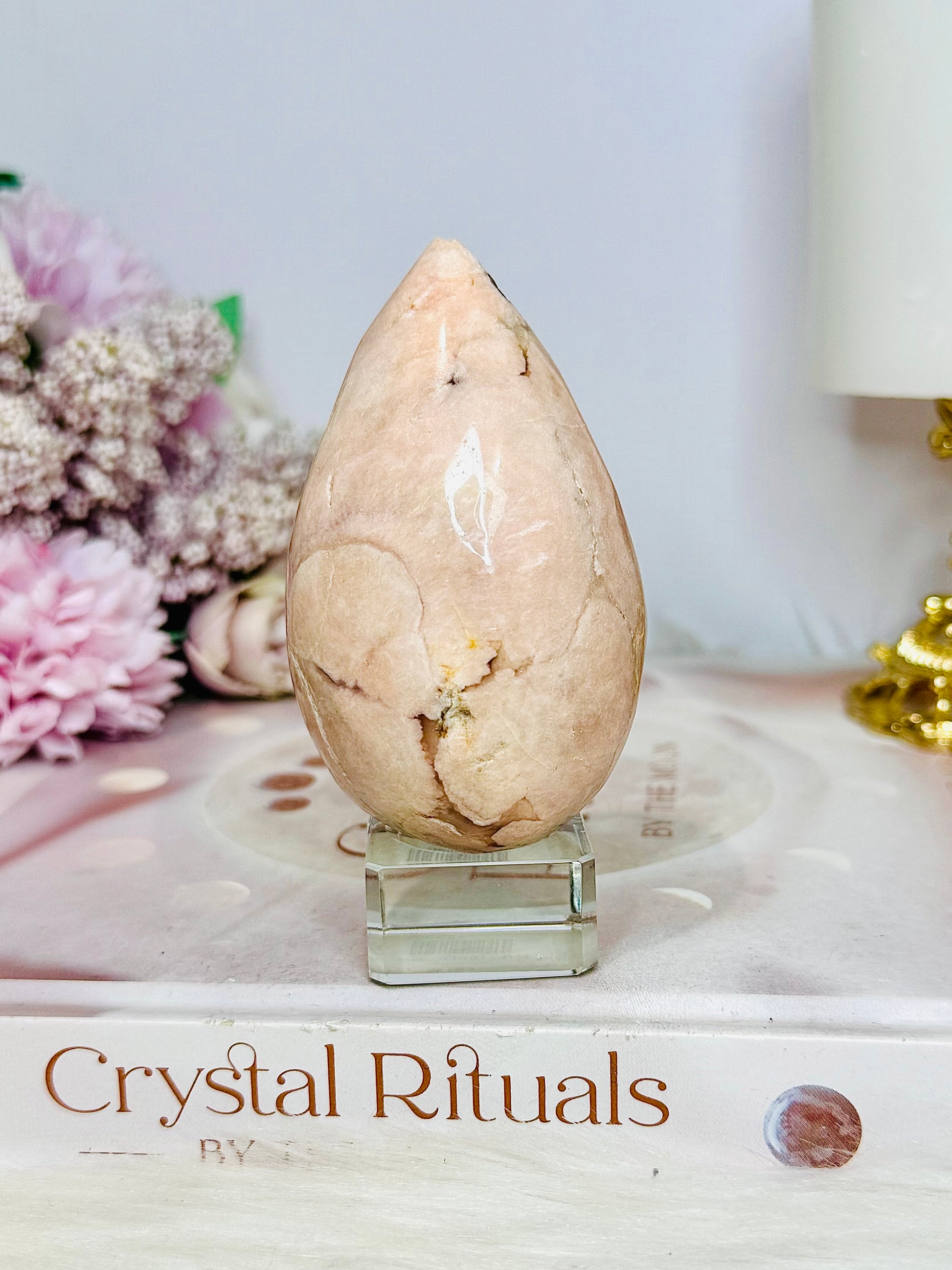 Flower Agate Carved Chunky Egg on Stand 200g
