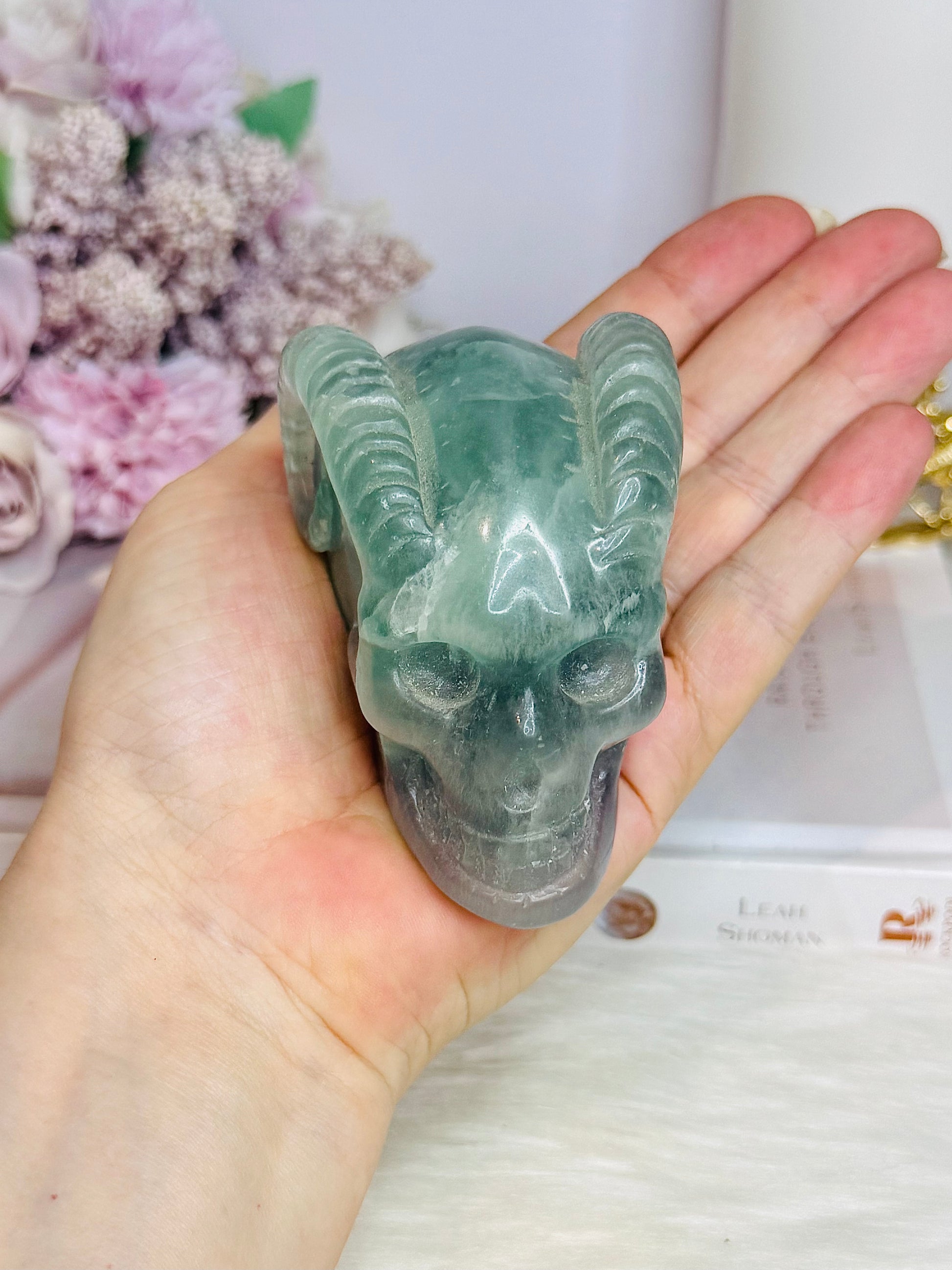 Fluorite Skull with Ram Horns 7.5cm 415g