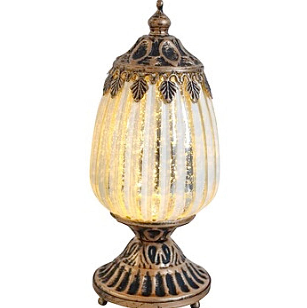 We've got this Lantern LED Standing White that is sure to catch the eye with its vintage-inspired glass and metal look, measuring 8x8x19cm - it's just the right size for a standout shelf or table piece. The warm, atmospheric glow it casts is perfect for those who want a little romance or drama in their space, whether it's at home or in a cafe.