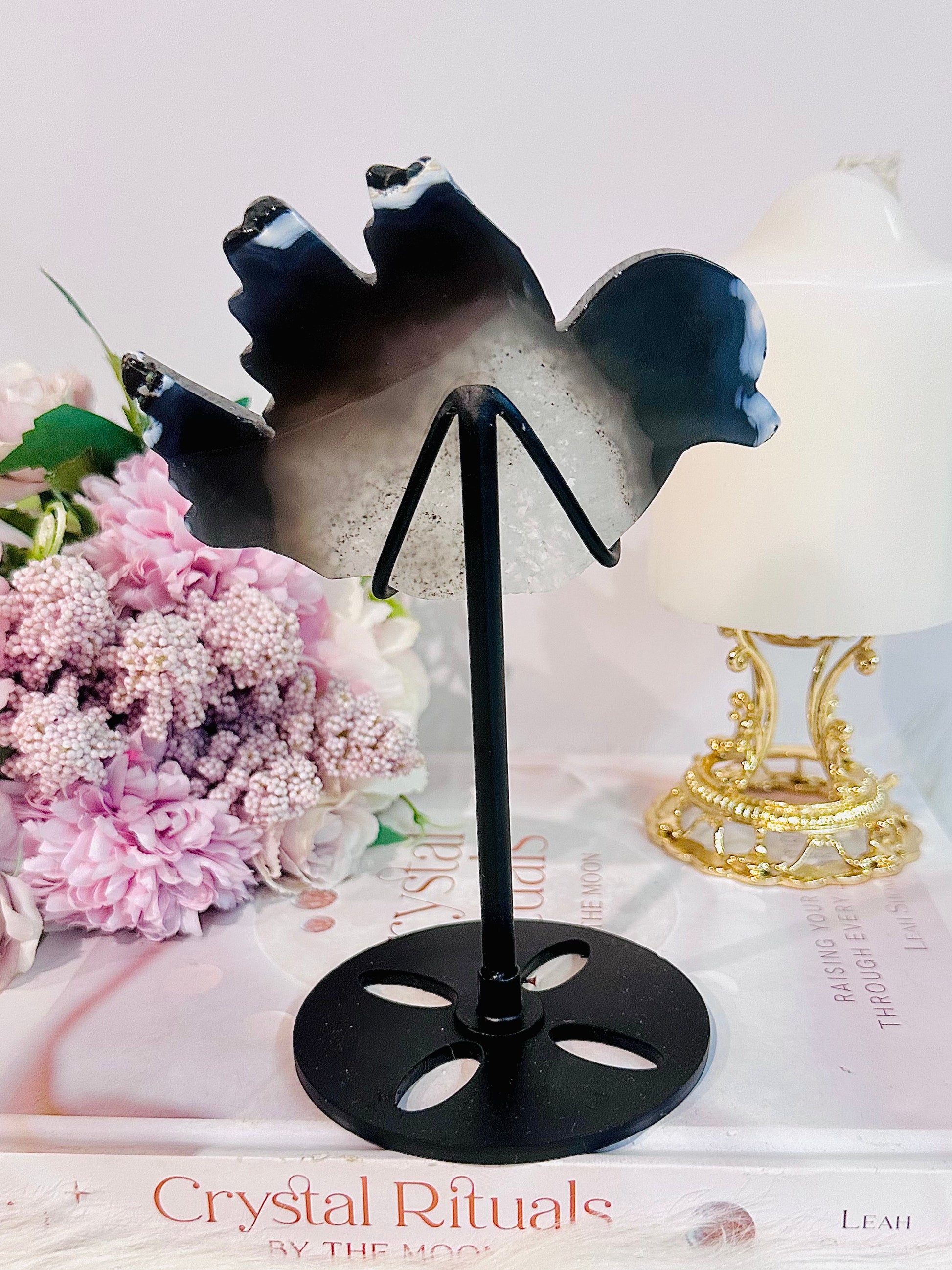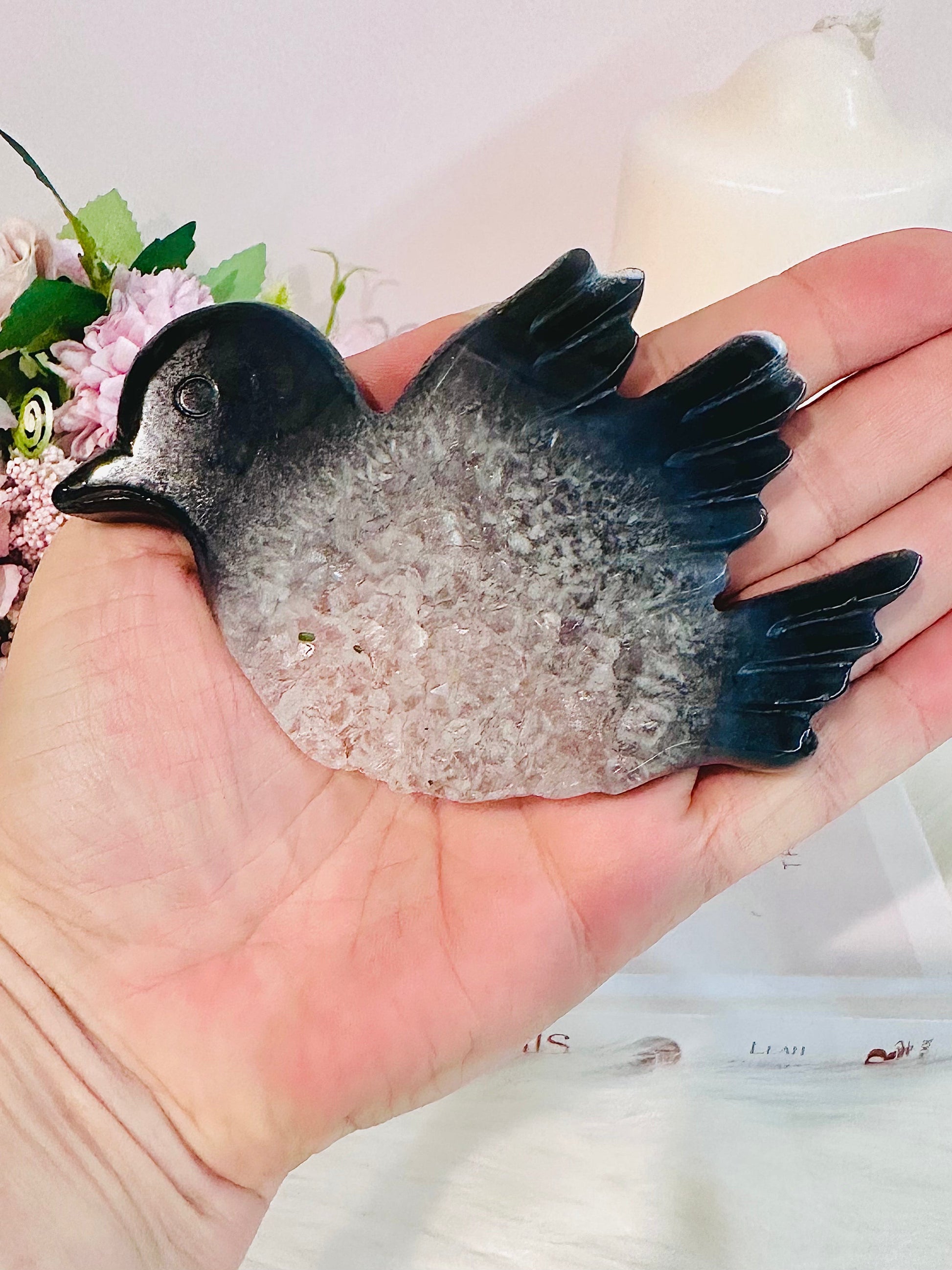 Gorgeous Druzy Agate Carved Bird On Black Stand