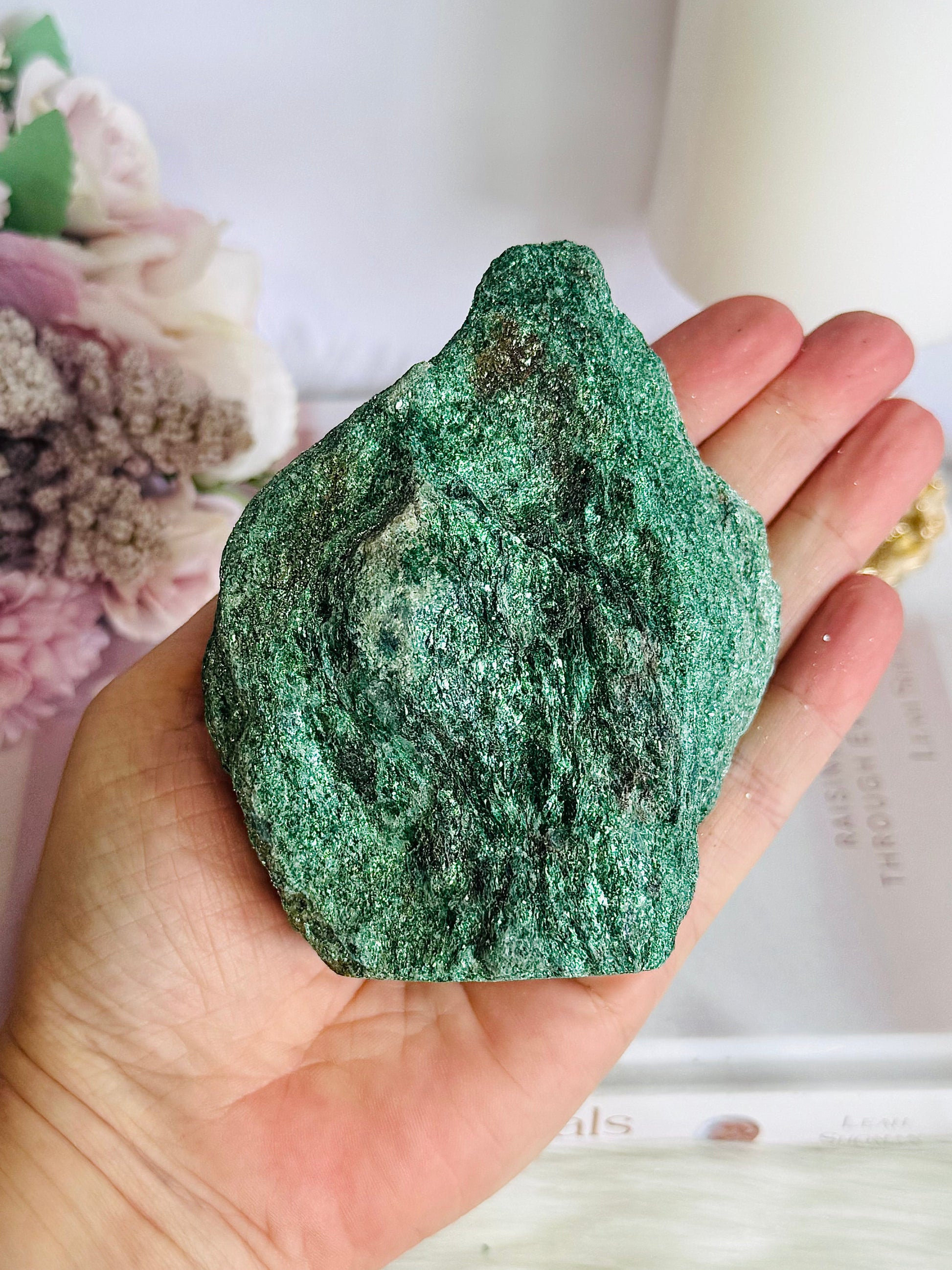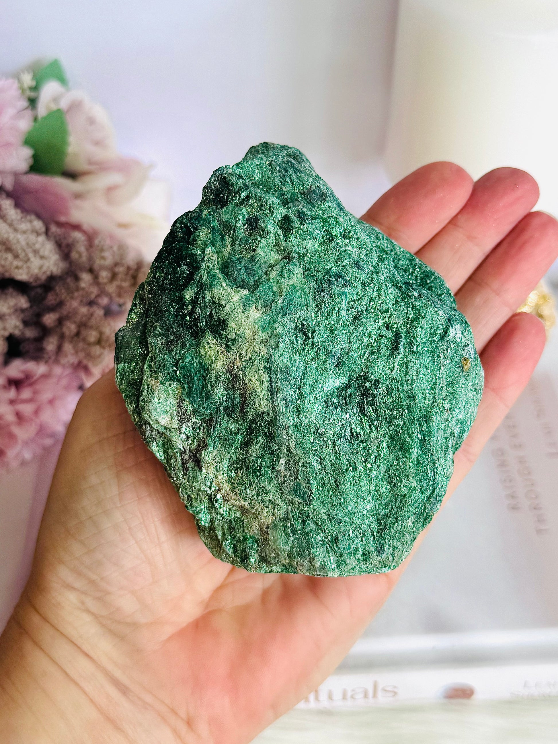 Healing ~ Fuchsite is a crystal aligned with the Heart Chakra. Fuchsite is believed to resonate with the energy of the Heart Chakra because it helps to promote emotional healing, relieve stress and anxiety, and promote a sense of calm and balance.