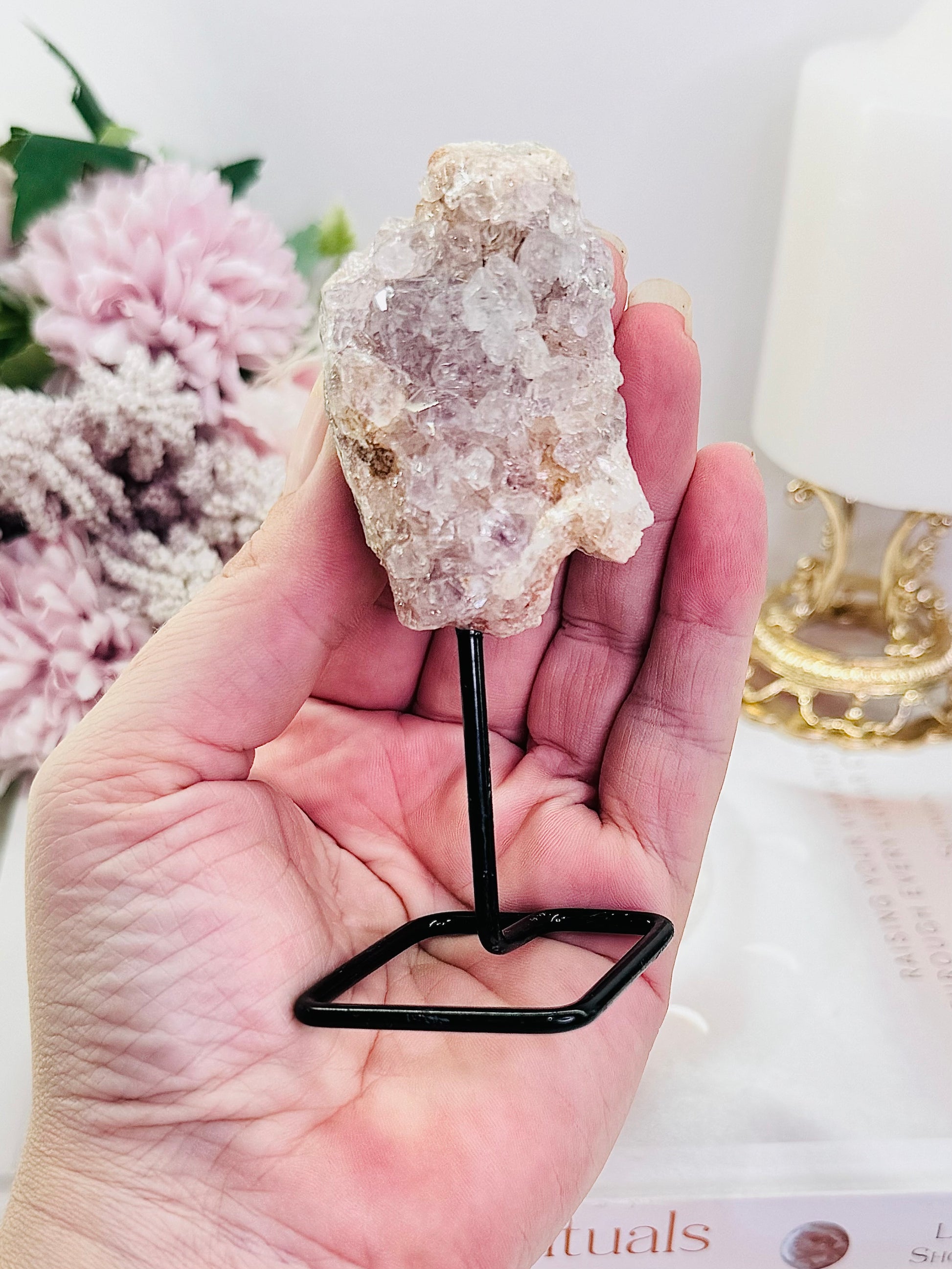 Gorgeous Sparkling Natural Pink Amethyst Geode on Stand From Geode 10cm